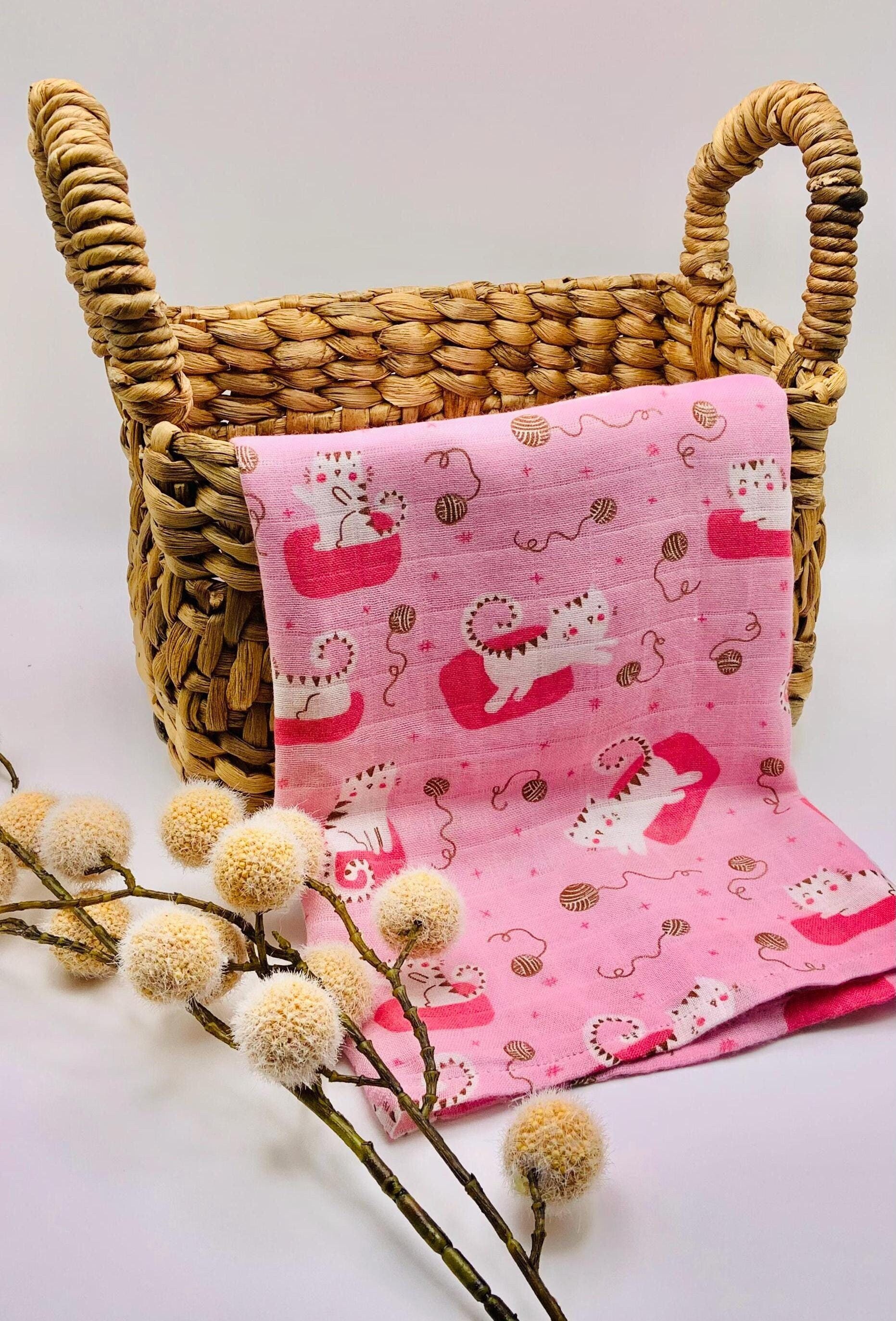 Pink Cat Kittens Cotton Bamboo Baby Muslin Swaddle - Baby Burp Clot...