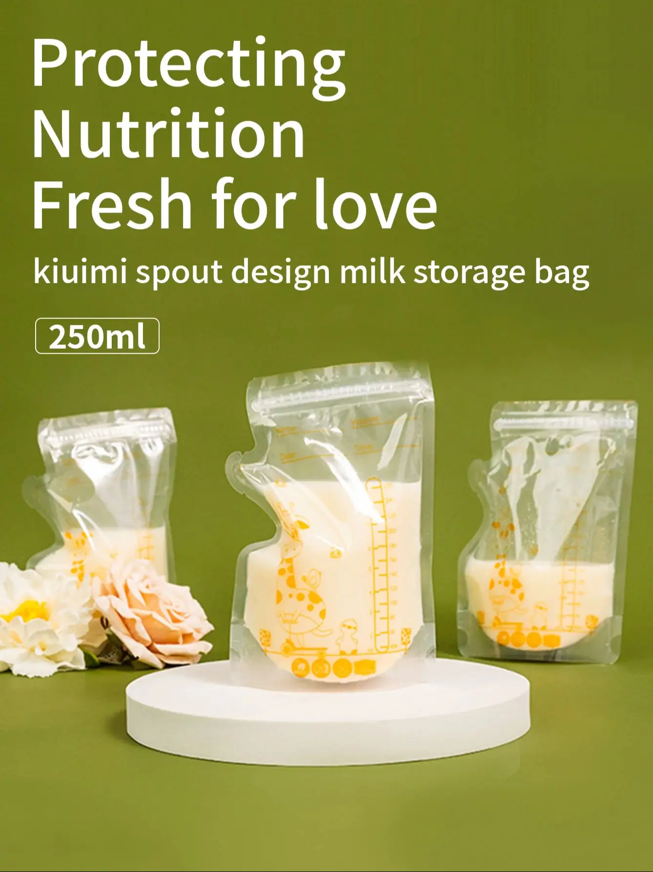 30PCS Giraffe-Themed 250ml Milk Storage Bags with Spout, Double Sea...