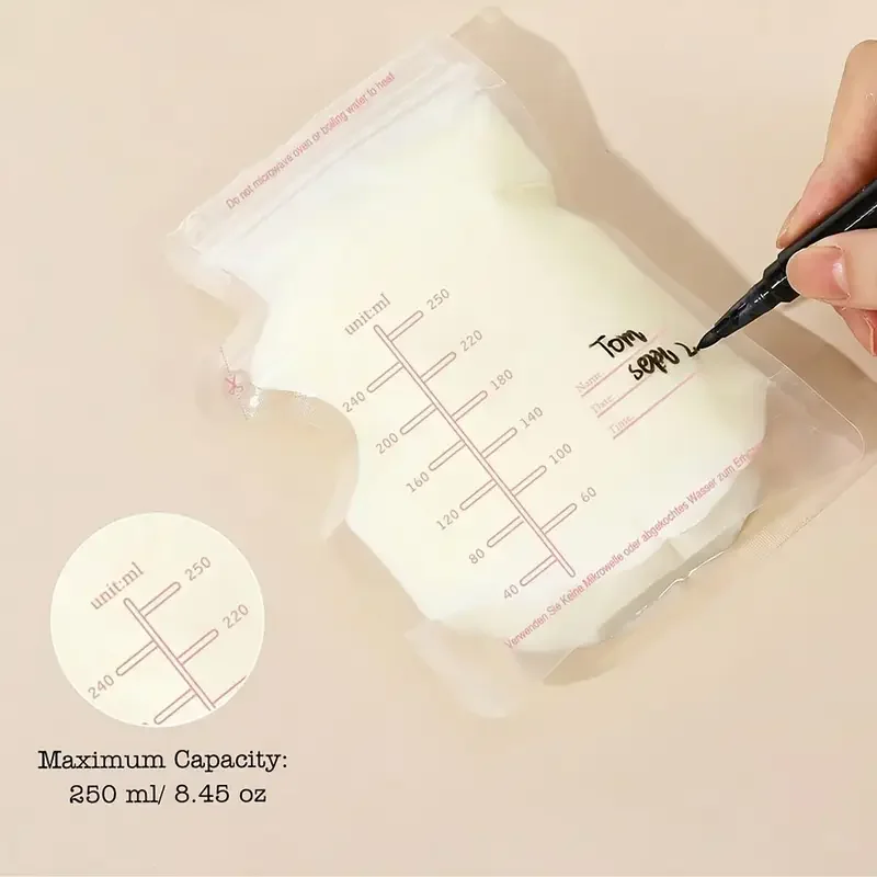 250ml 100pcs Breastmilk Storage Bag Self Standing Baby Food Storage Containers No Leak Milk Freezer ...