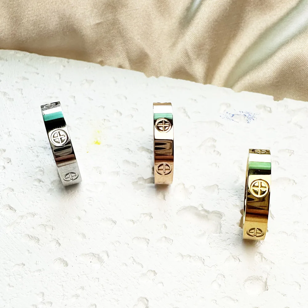 18K Gold-Plated Stainless Steel Ring Silver Color Anillos Mujer Couple Wedding Ring Bague Femme Acie...