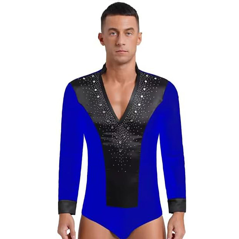 Mens Latin Dance Leotard Shirt Top Figure Skating Costume V Neck Lo...