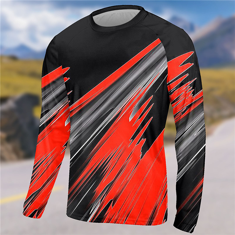 Men's Downhill Jersey Graphic Long Sleeve Bike Jersey Top with 3 Re...