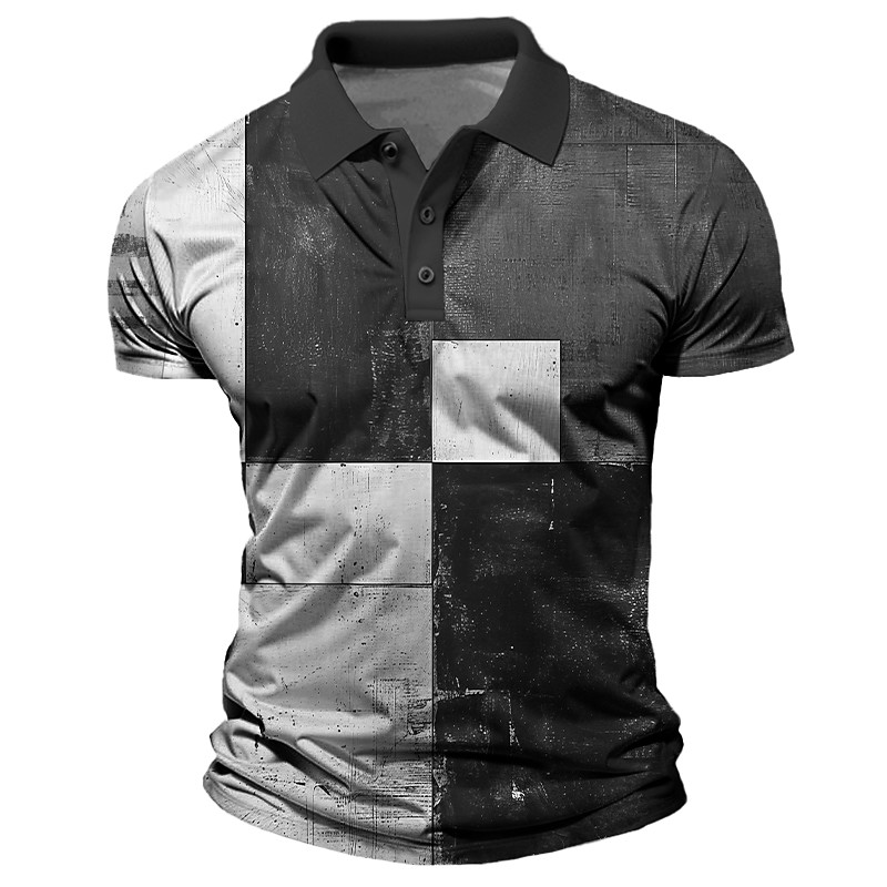 Men's Plaid Polo Shirts Golf Shirt Short Sleeve Polo Shirts Collare...