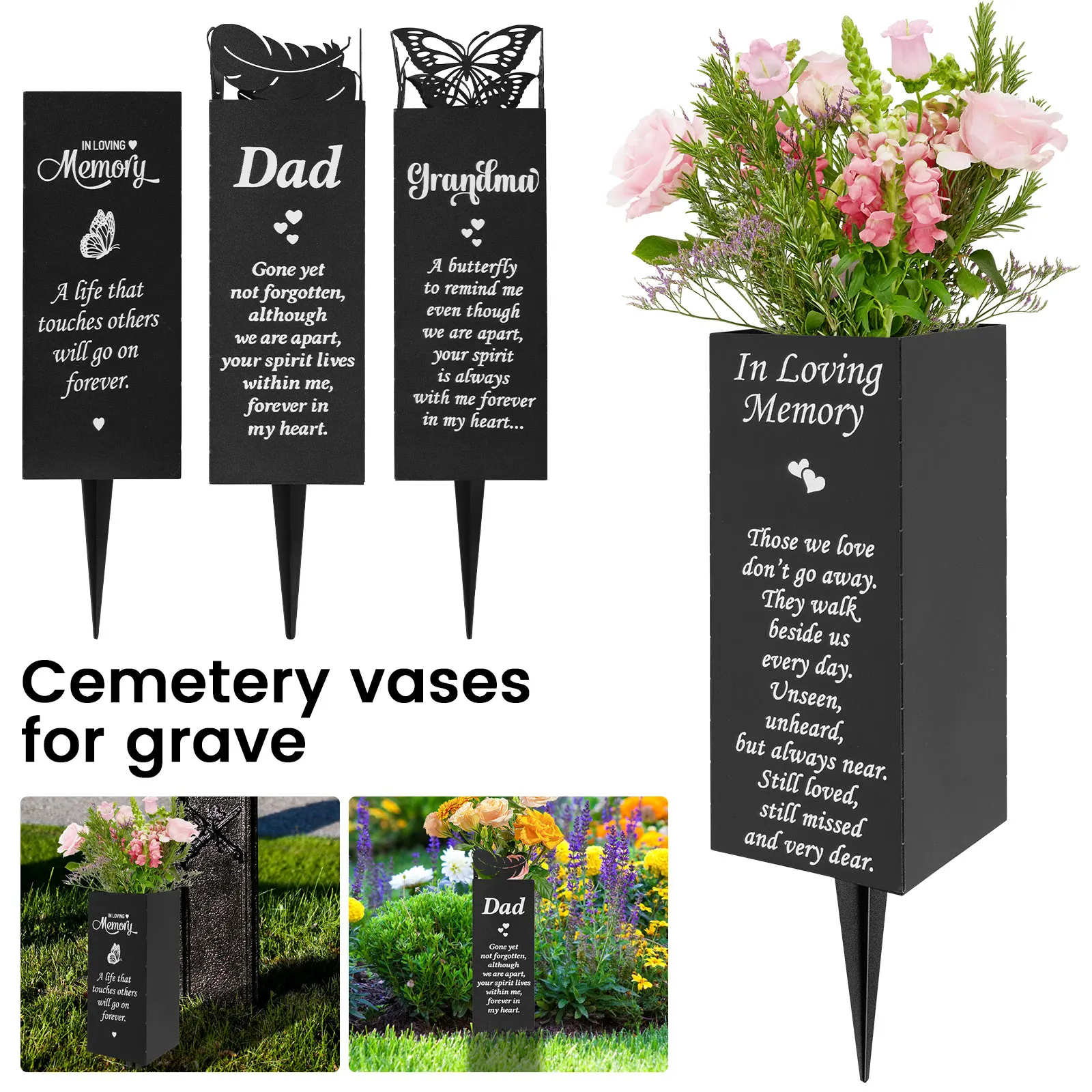 Memorial Floral Vase Metal Cemetery Vase with Spike Headstones Flower Holder Memorial Grave Markers ...