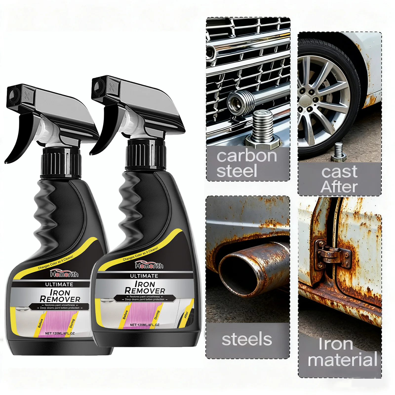 2PCS Car Wheel Cleaner Rust Remover Auto Degreaser Polisher for Alloy Rims Metal Parts Anti-Rust Pro...