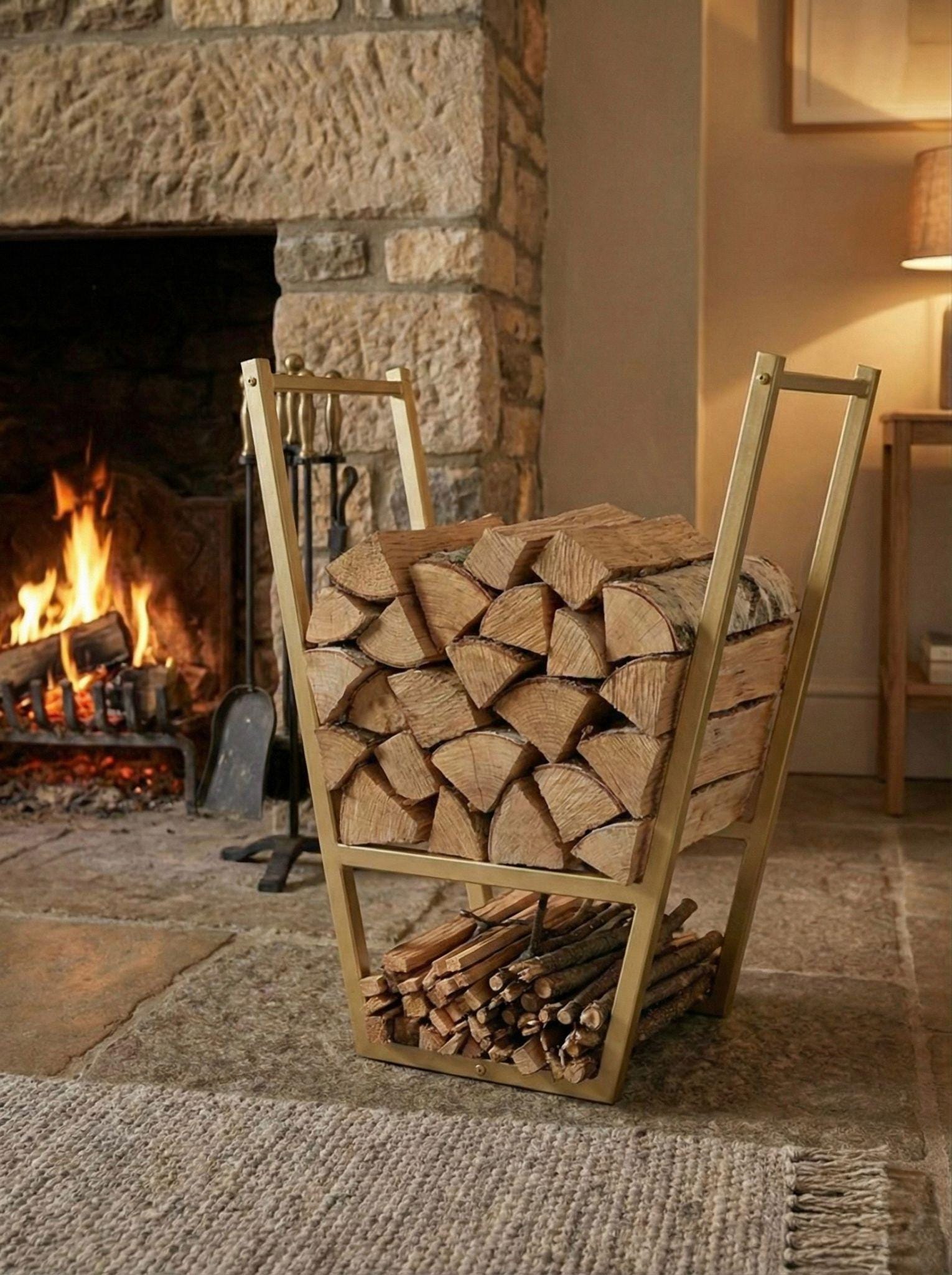 Handmade Metal Firewood Log Holder: Indoor/Outdoor Steel Storage Sh...