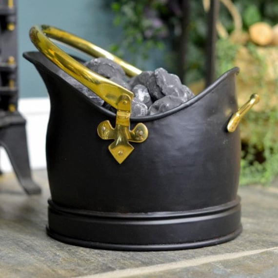 "This lovely simple slipper design Waterloo Black Iron Coal Bucket or scuttle, our bucket is a ...