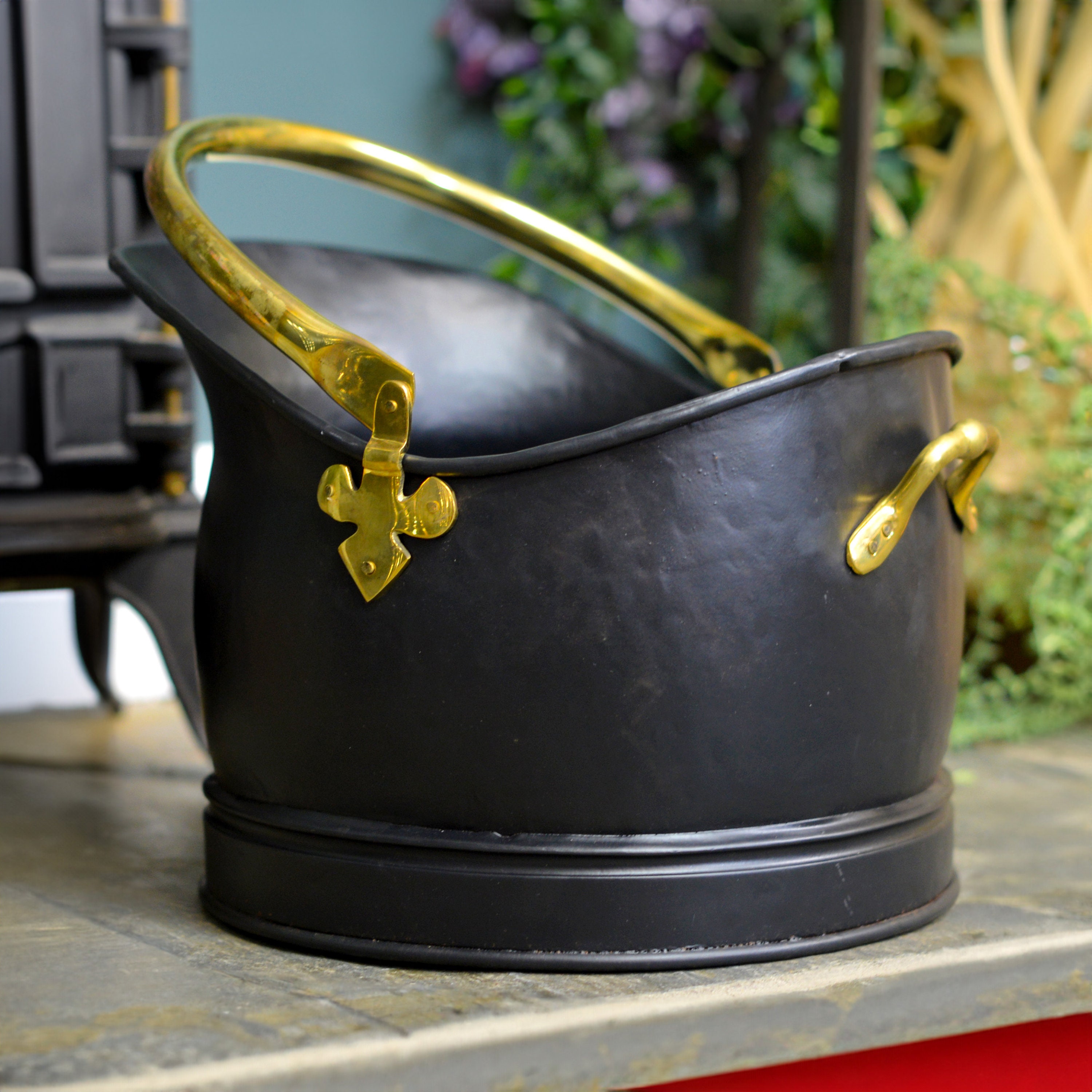 "This polished brass and black iron coal bucket derives from our Ironbridge collection and take...
