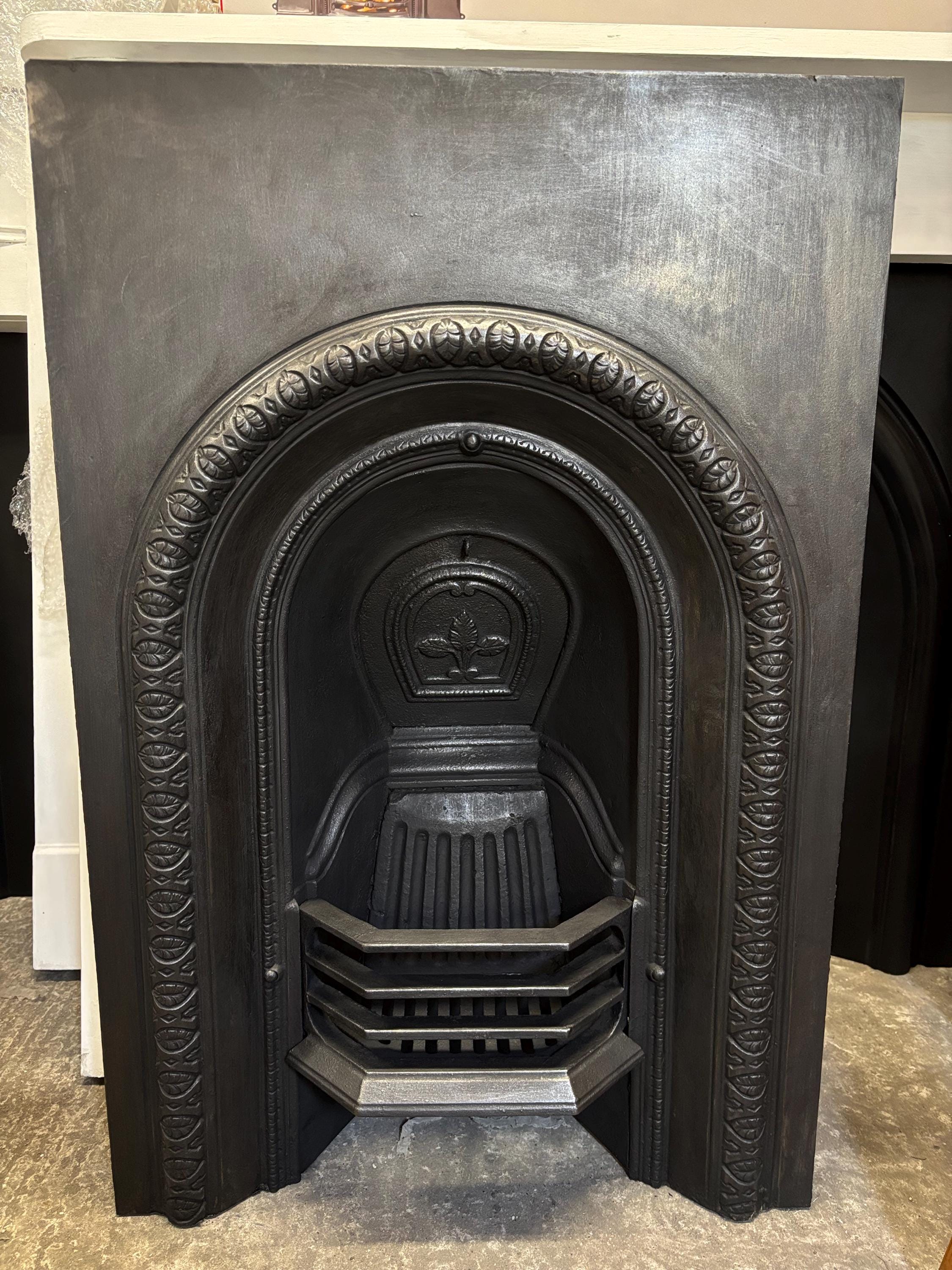 "A stunning large Empire style cast iron fireplace, fireback, decorative frieze. A great firepl...