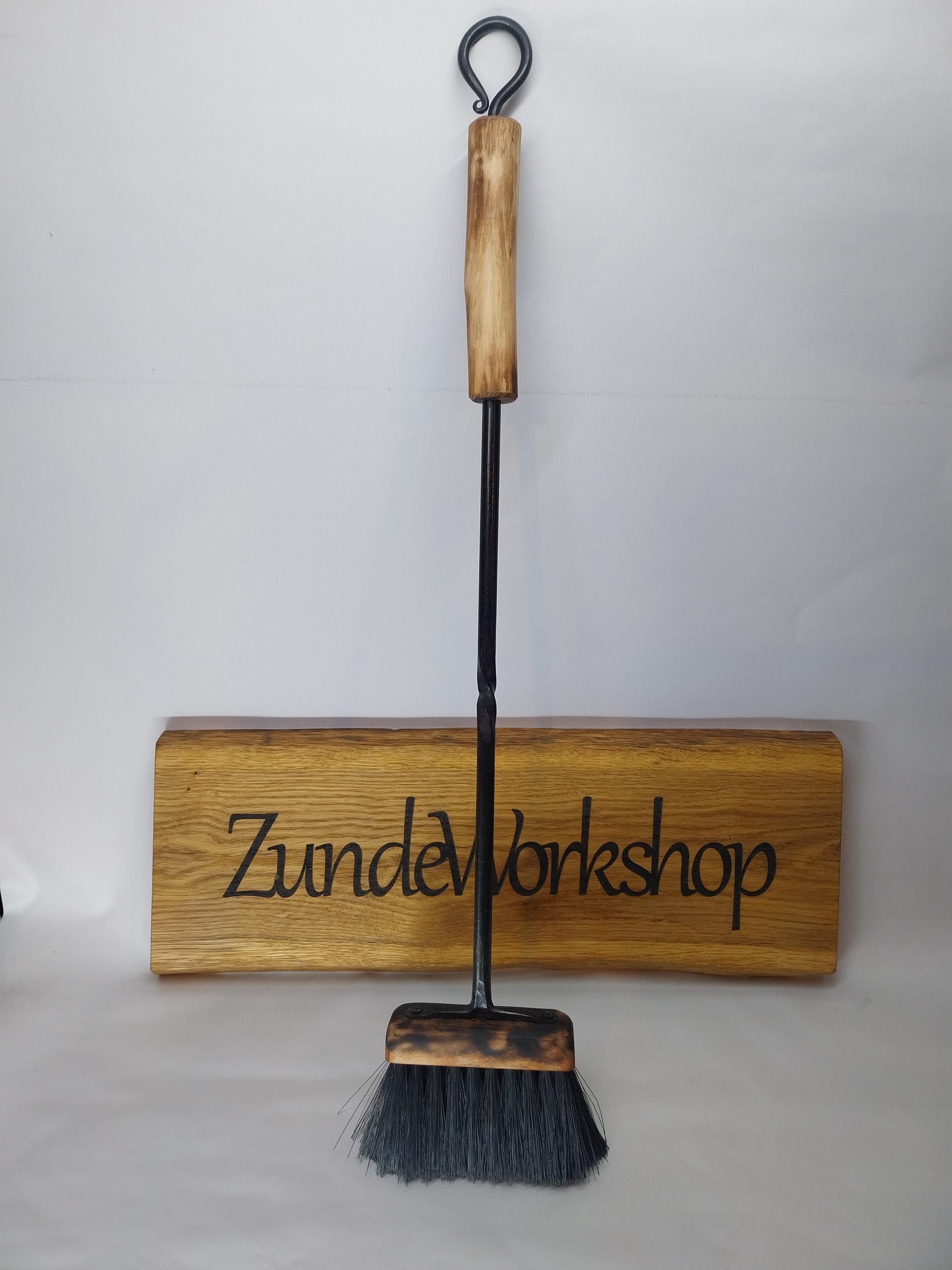 Hand Forged Iron Fireplace Ash Brush.Cast Iron Fire Tool With Woode...