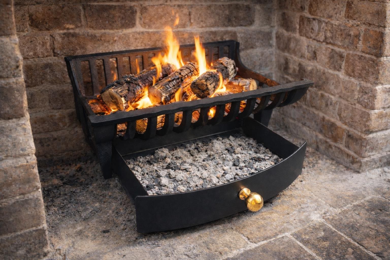 Cast iron firewood burner with ash collection drawer, cast iron bra...