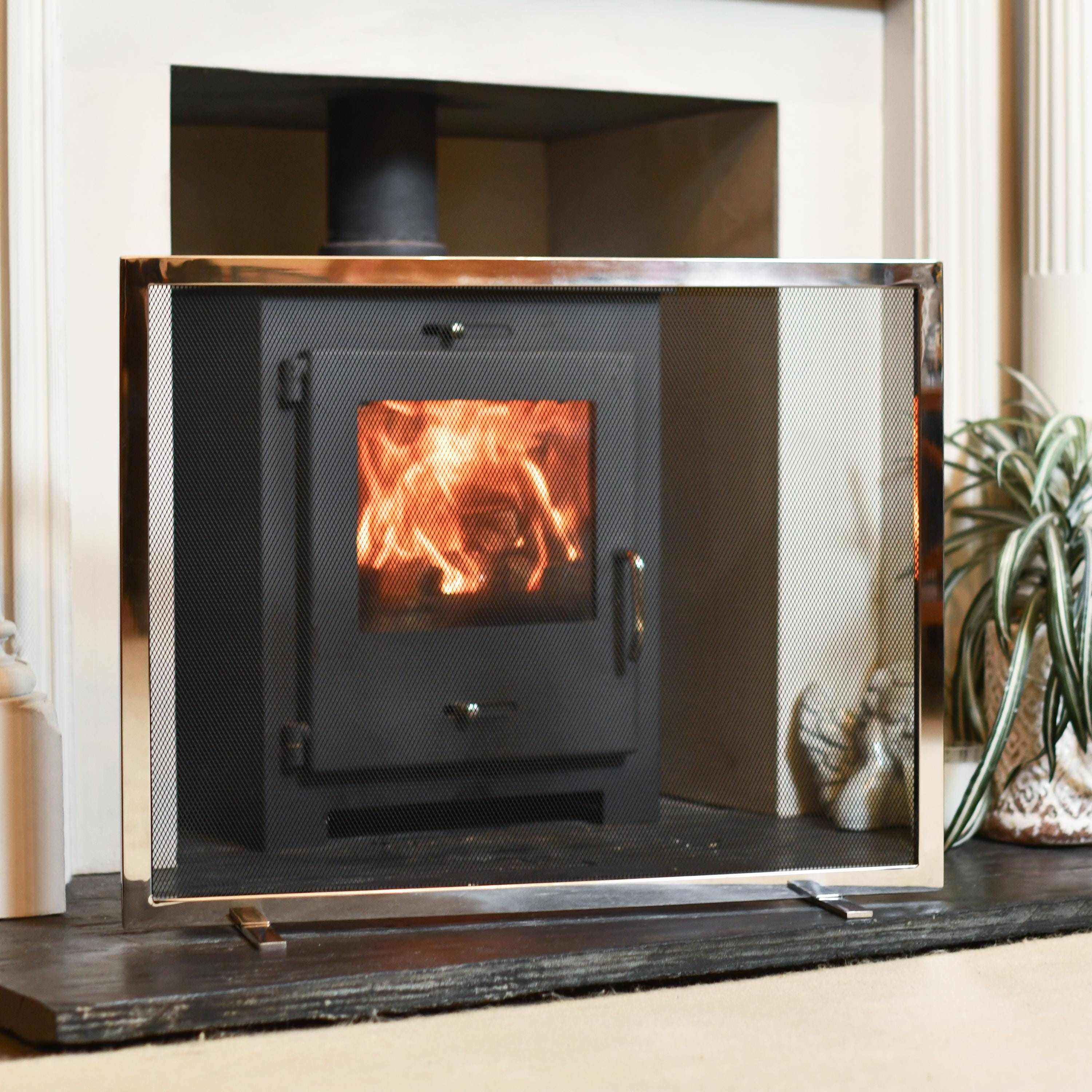 Polished Stainless Steel Fire Screen, Fire Guard, Contemporary Fire...
