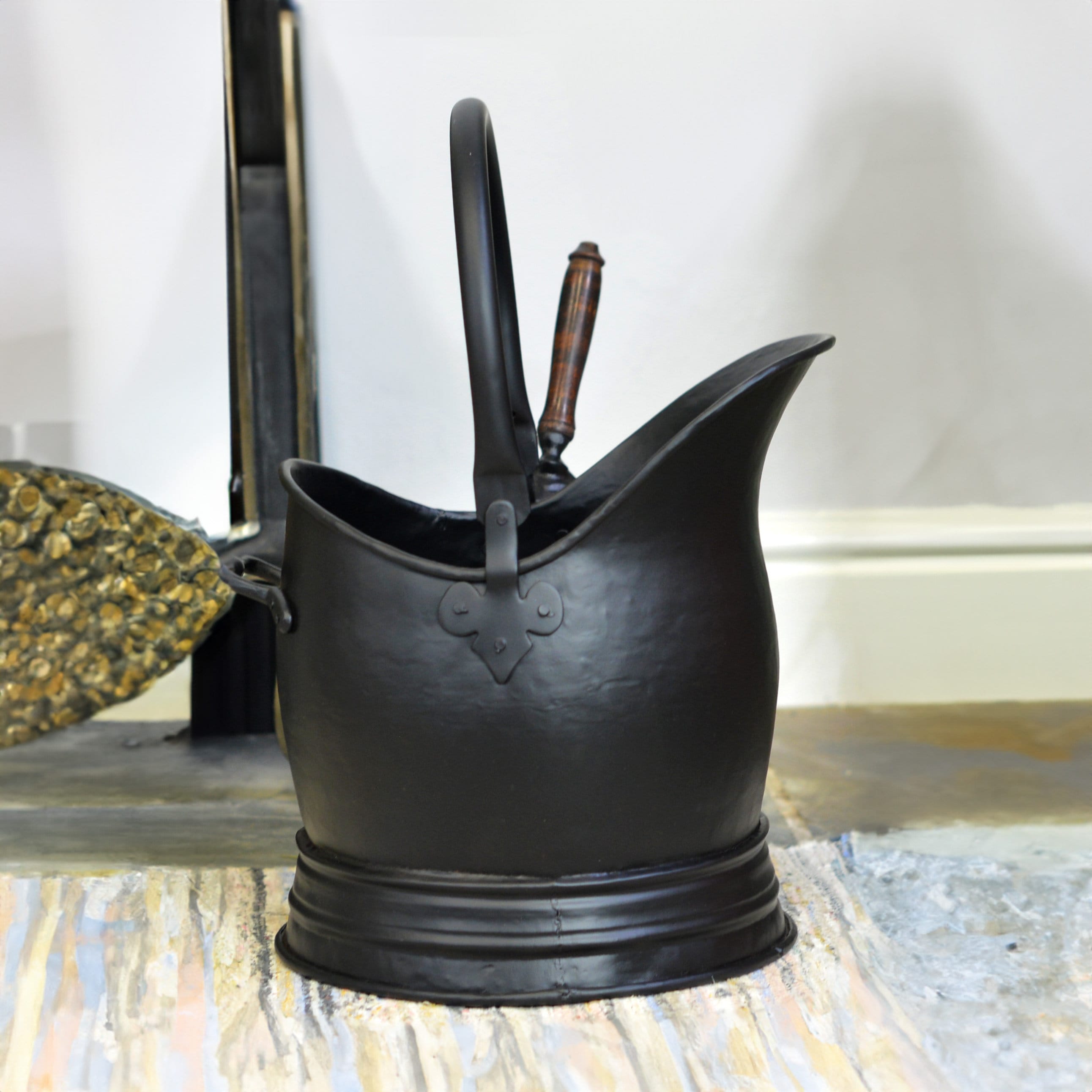 Traditional Black Coal Bucket With Shovel with Wooden Handle, Fires...