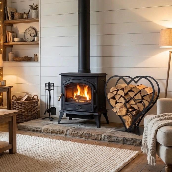 Large Iron Heart Log Store - Rustic Farmhouse Wood Holder - 61cm Ta...