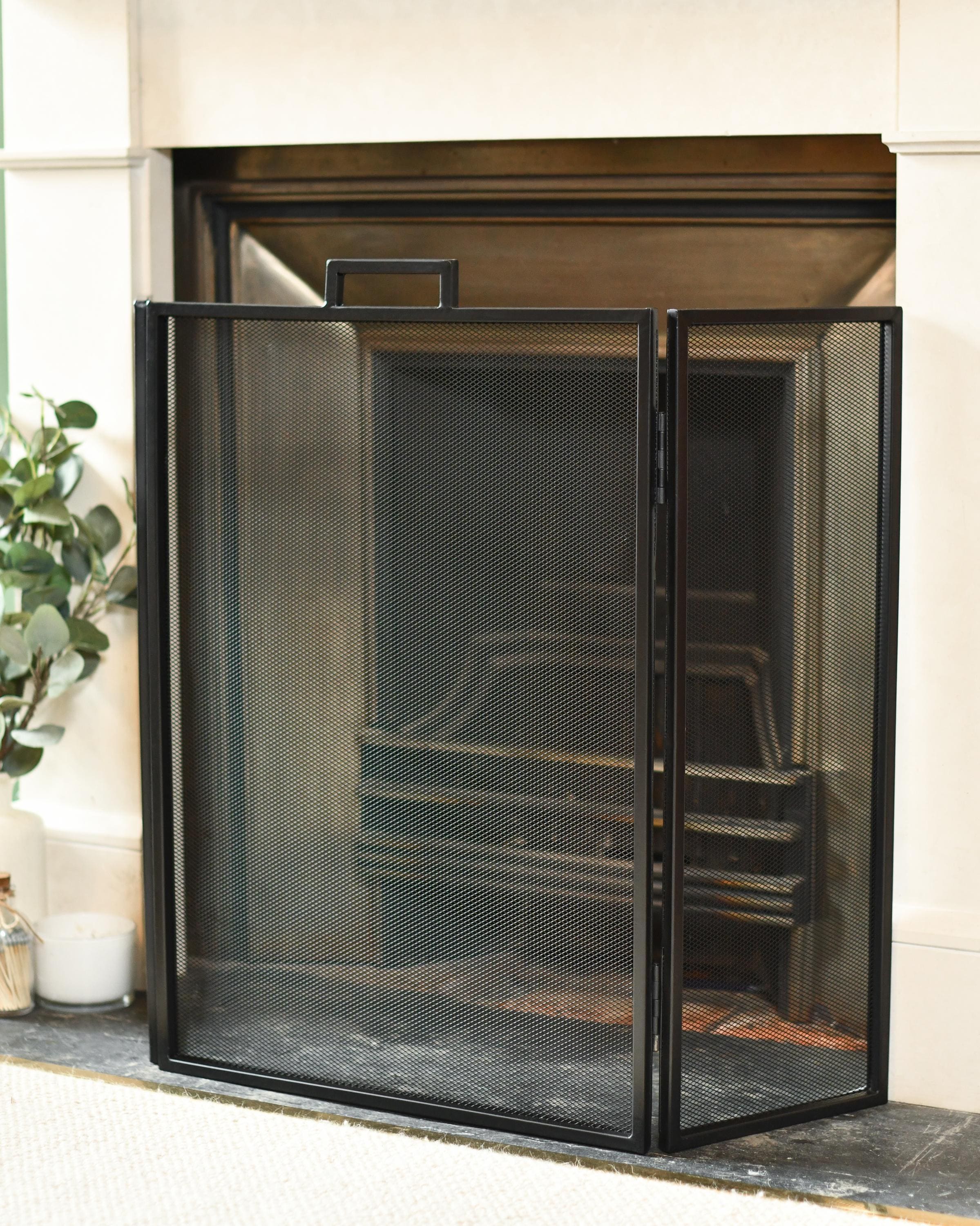 "A contemporary three fold fireguard features thick trim around the fireguard, providing extra ...