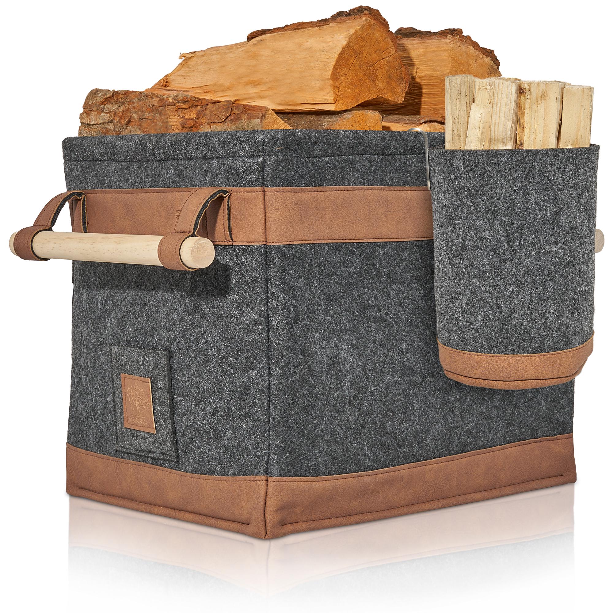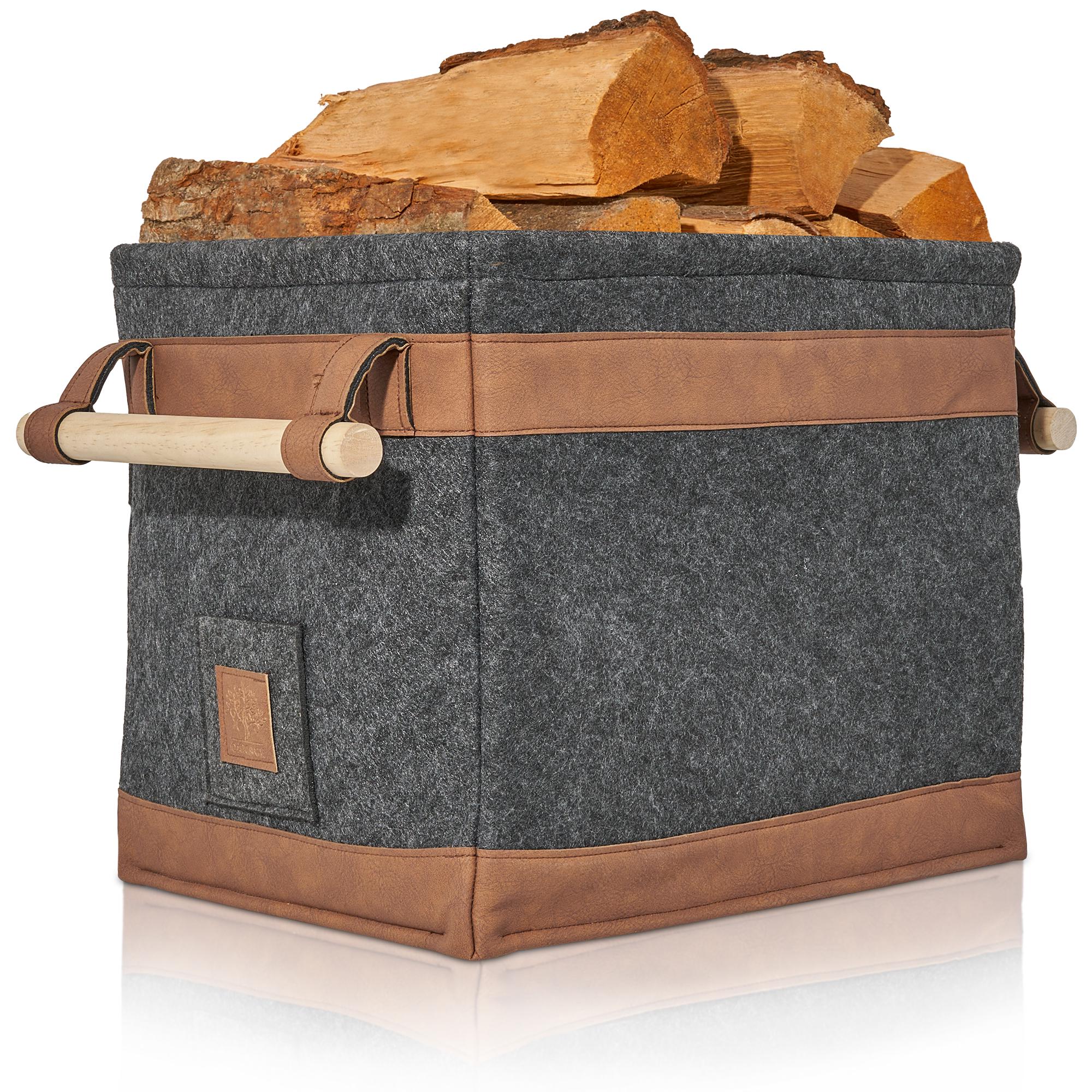 OAKAGE Large Firewood Basket [Dirt-Repellent Lining and Leather Bas...
