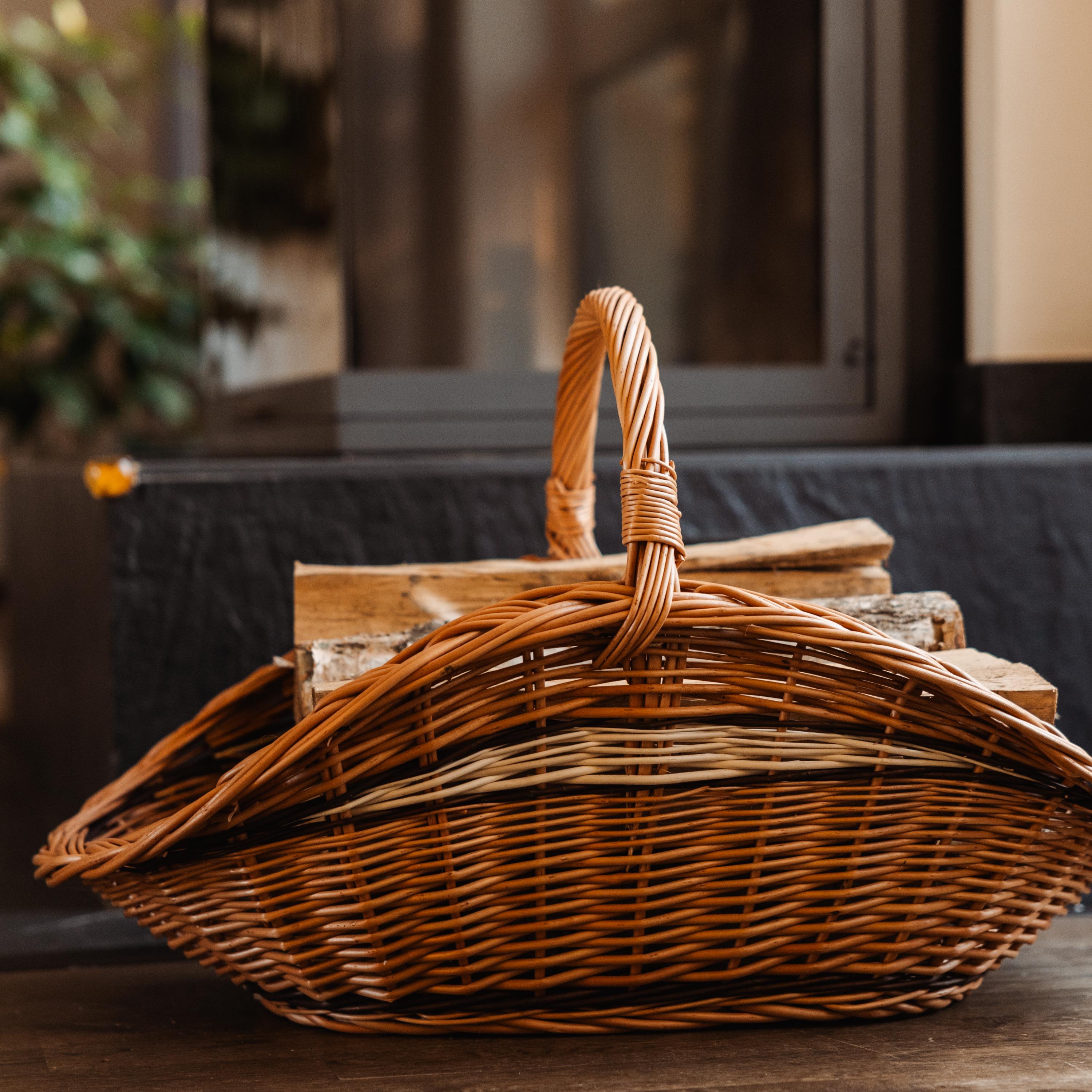 Wicker Basket, Picnic basket, firewood Holder, rustic basket, log c...