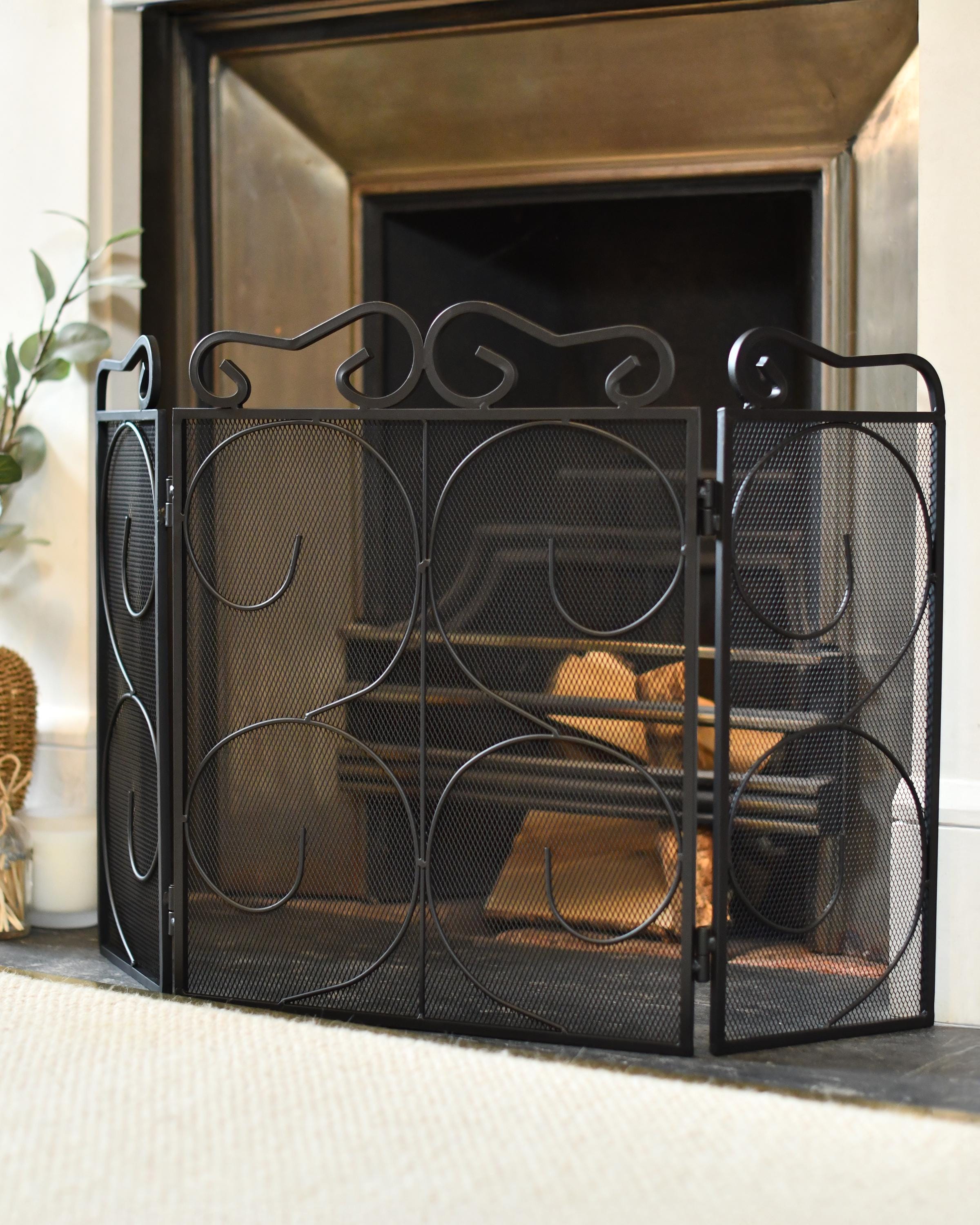 Black Three Fold Scroll Design Fire Guard, Decorative Scroll Design...