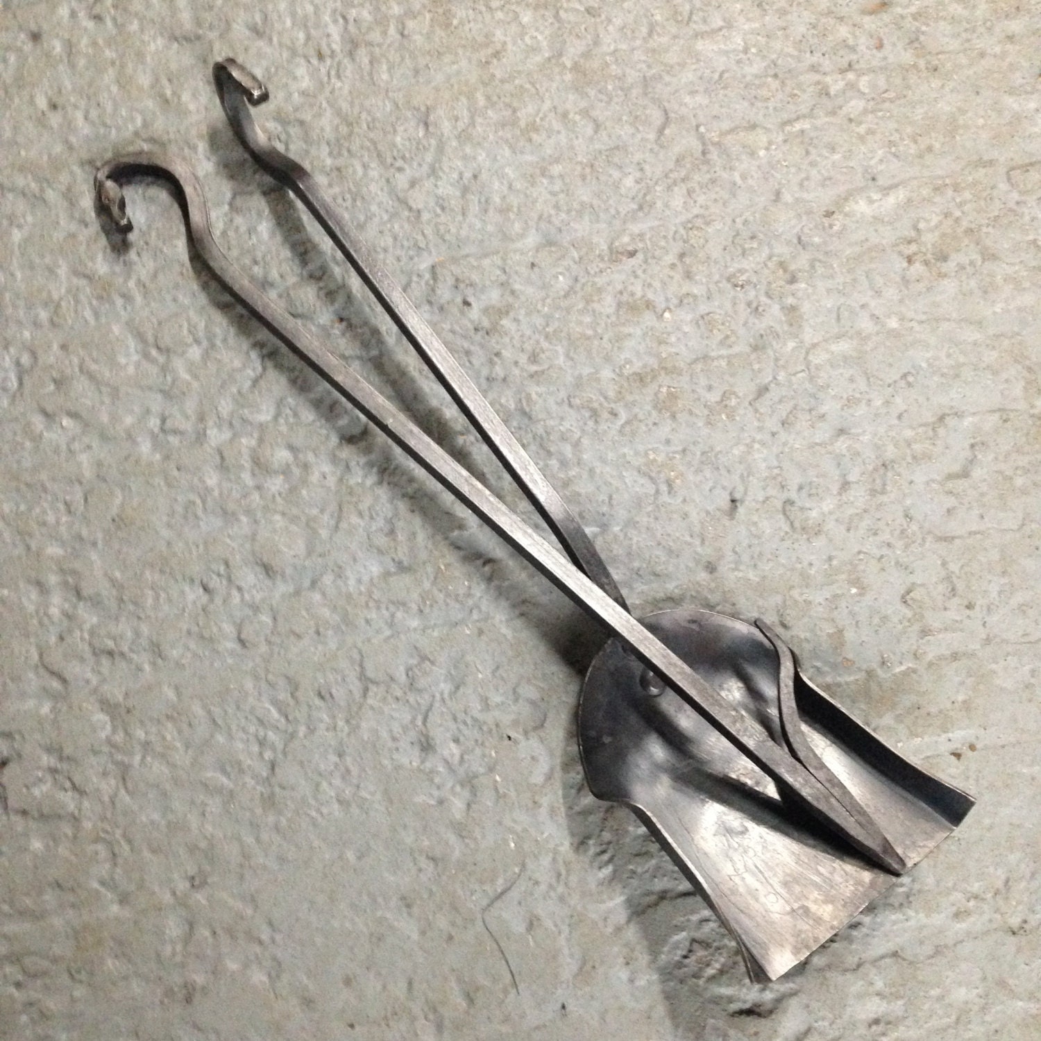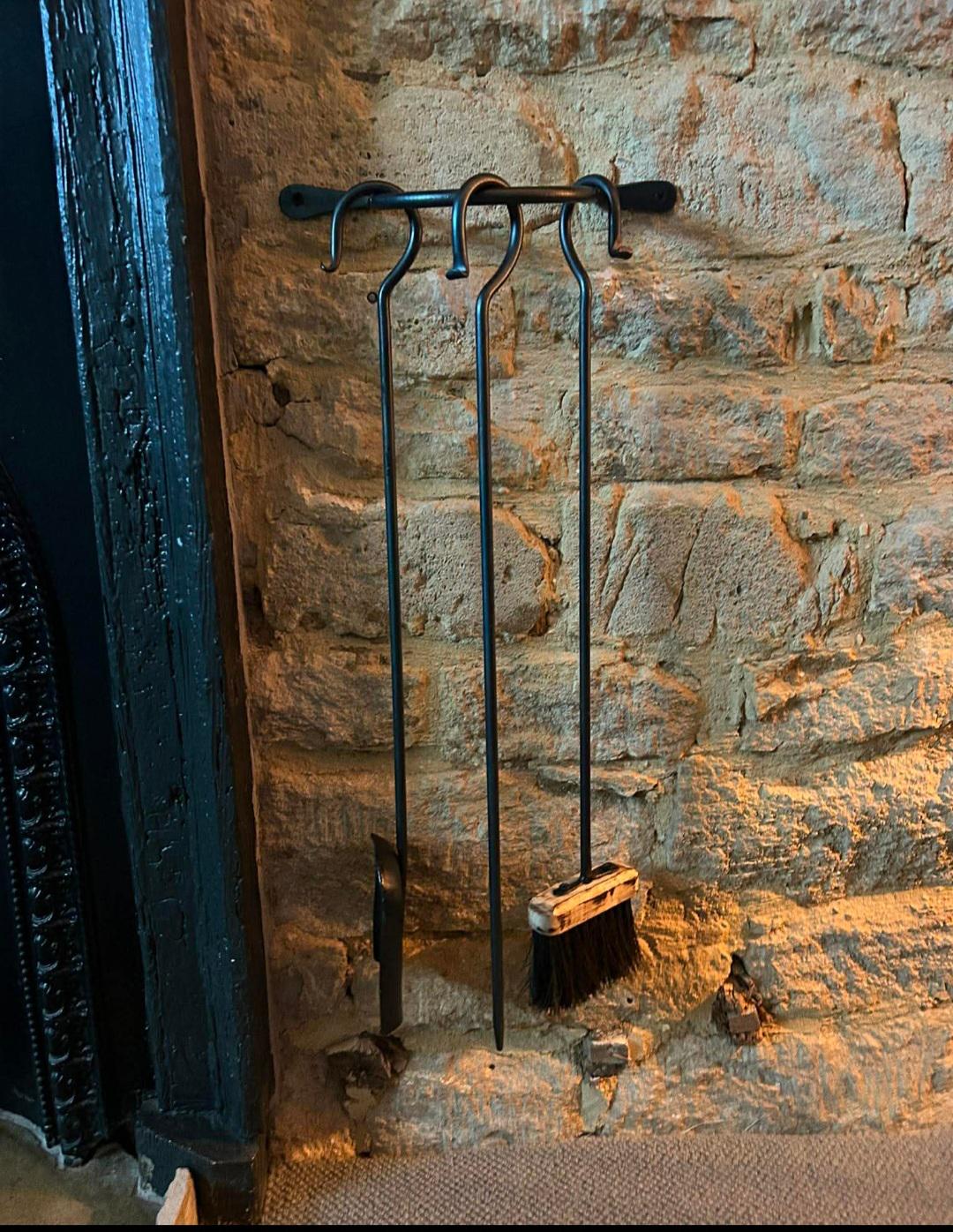 Wall Mounted Fireplace Tool Set An elegantly hand forged fire set comprising of a fire poker, block ...