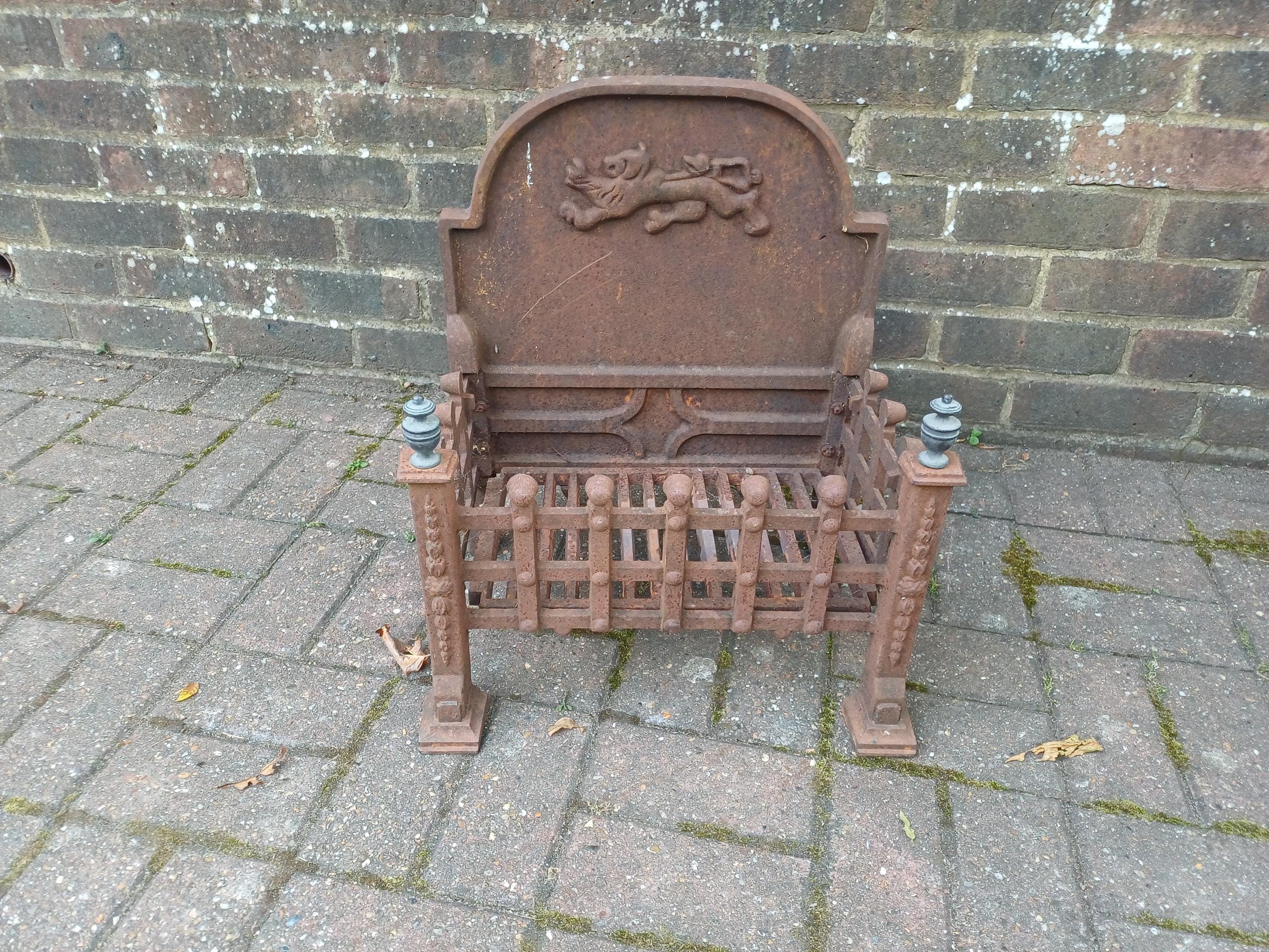 This is an early to mid 20th century cast iron fire grate, a substantial and decorative piece of ant...