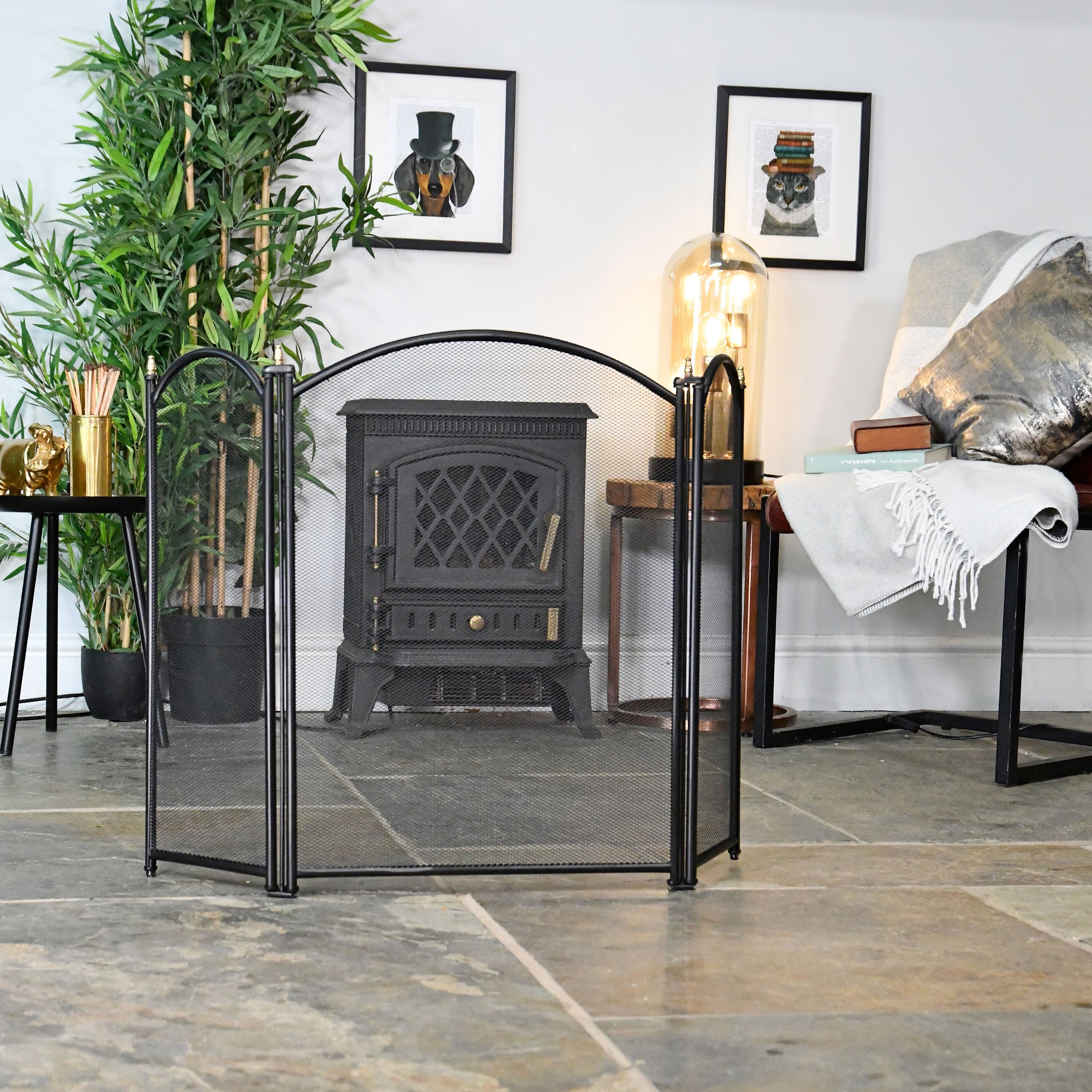 "Made from robust steel and finished in an all-black finish, this fireguard will suit any inter...
