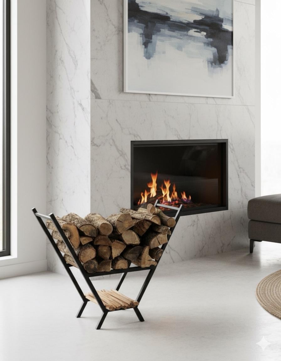 Modern V-Shaped Steel Firewood Rack - Powder Coated Log Holder