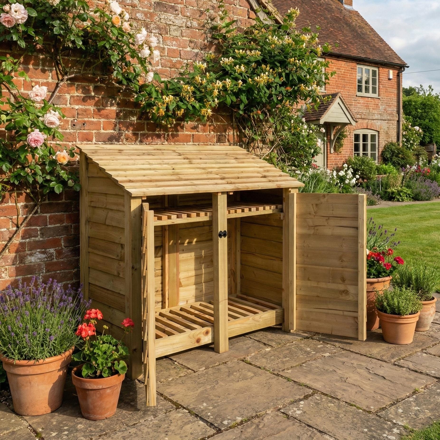 Large 7.5ft Wooden Log Store with Doors | Heavy Duty Firewood Stora...