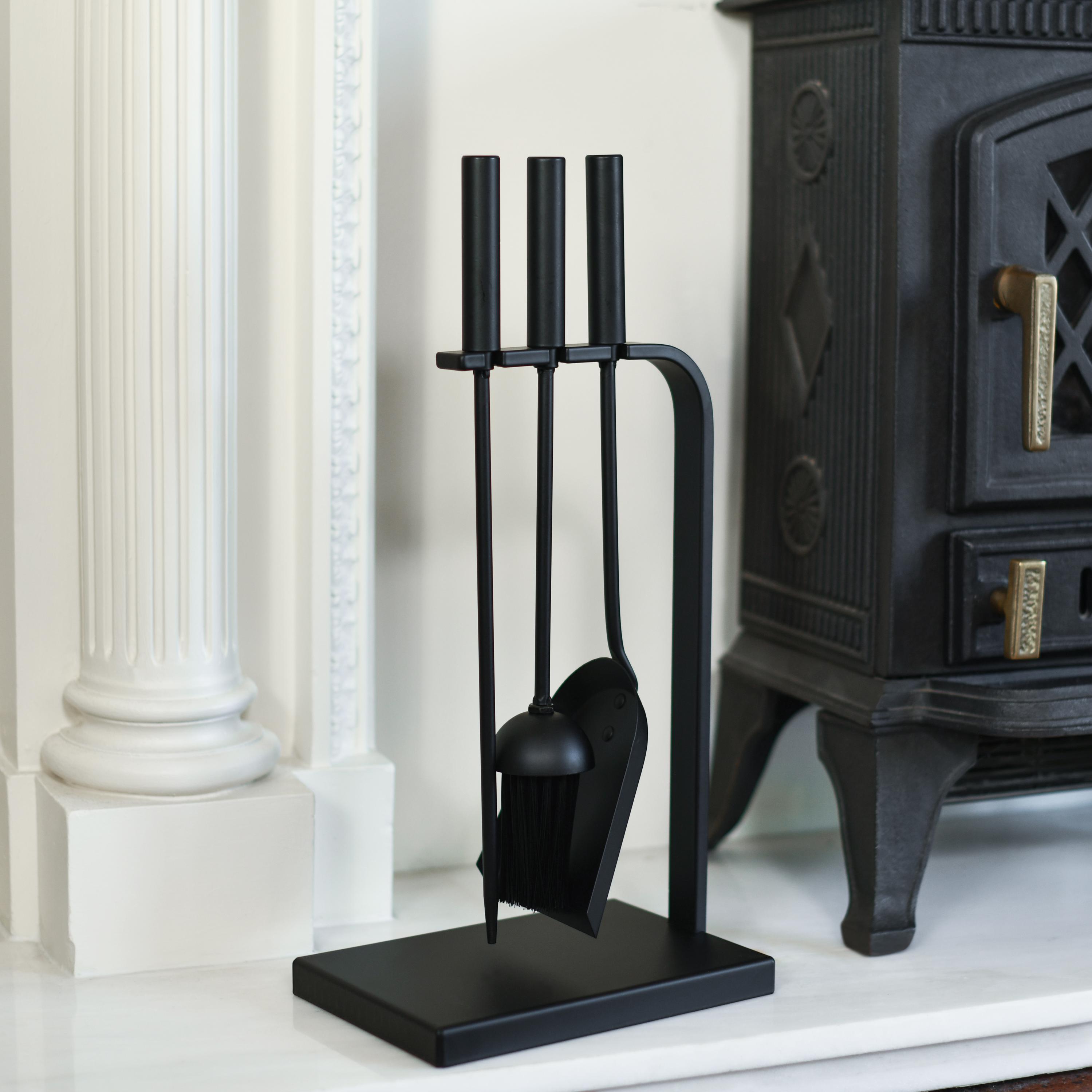 Black Contemporary Fireside Tools Set, Companion Set, Open Fire, Wo...