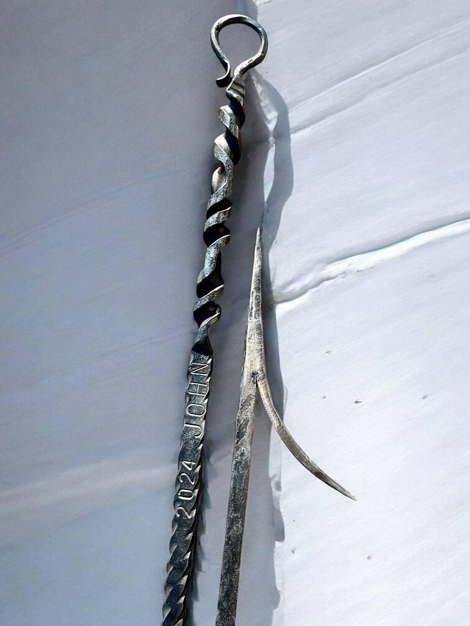 "Hand-forged personalized fire poker with custom engraving - a unique blacksmith gift for Dad, ...
