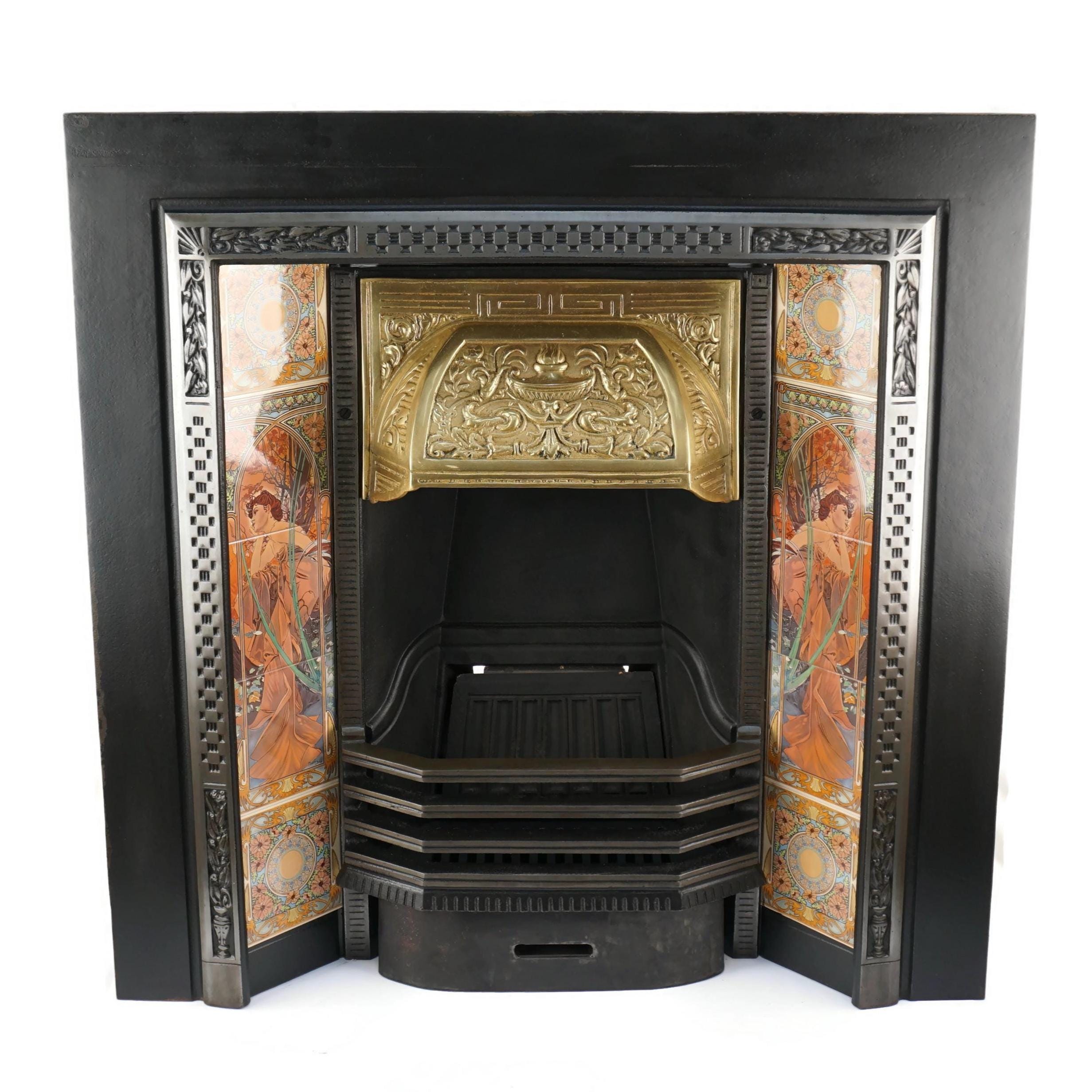 Vintage English Stovax Fireplace, Victorian Cast Iron Firebox and F...