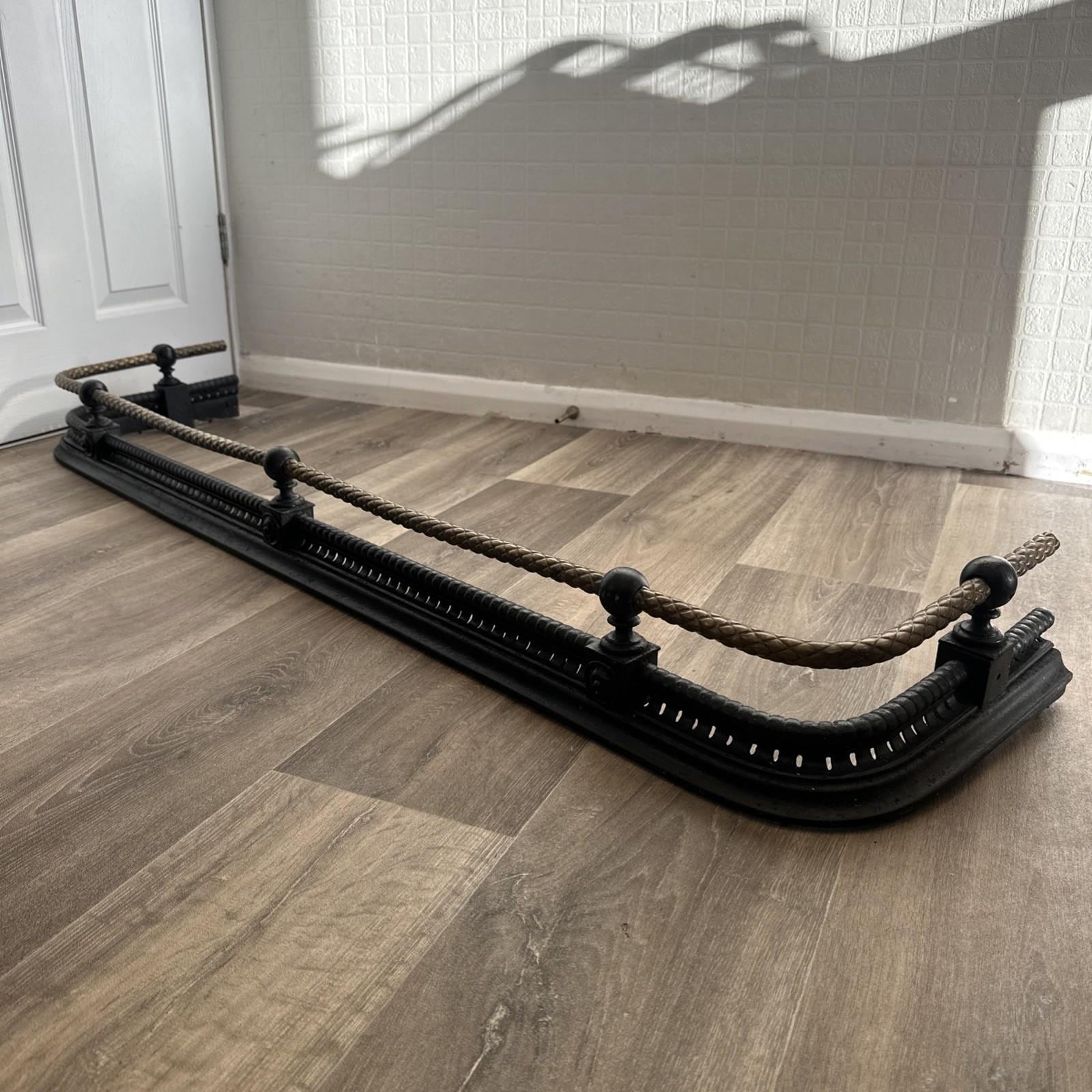 Large Victorian Cast Iron Fireplace Fender 143cm Brass Rope Rail c....