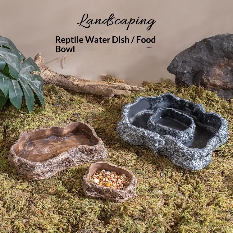 Reptile Rock Style Water Food Dish Soaking Bath Bowl for Lizard Tor...