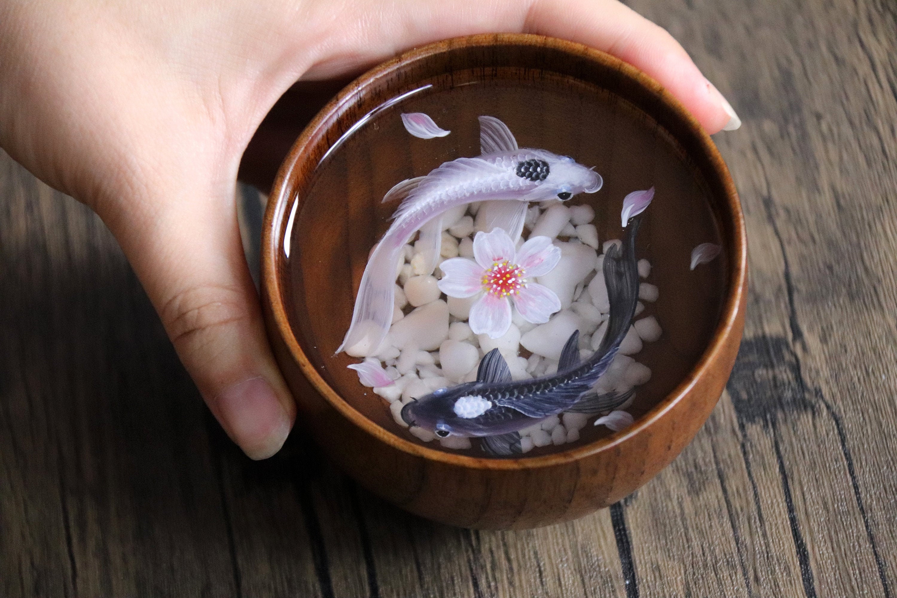 3D Resin Painting Yin Yang aquarium, Resin Painting kois, cherry bl...