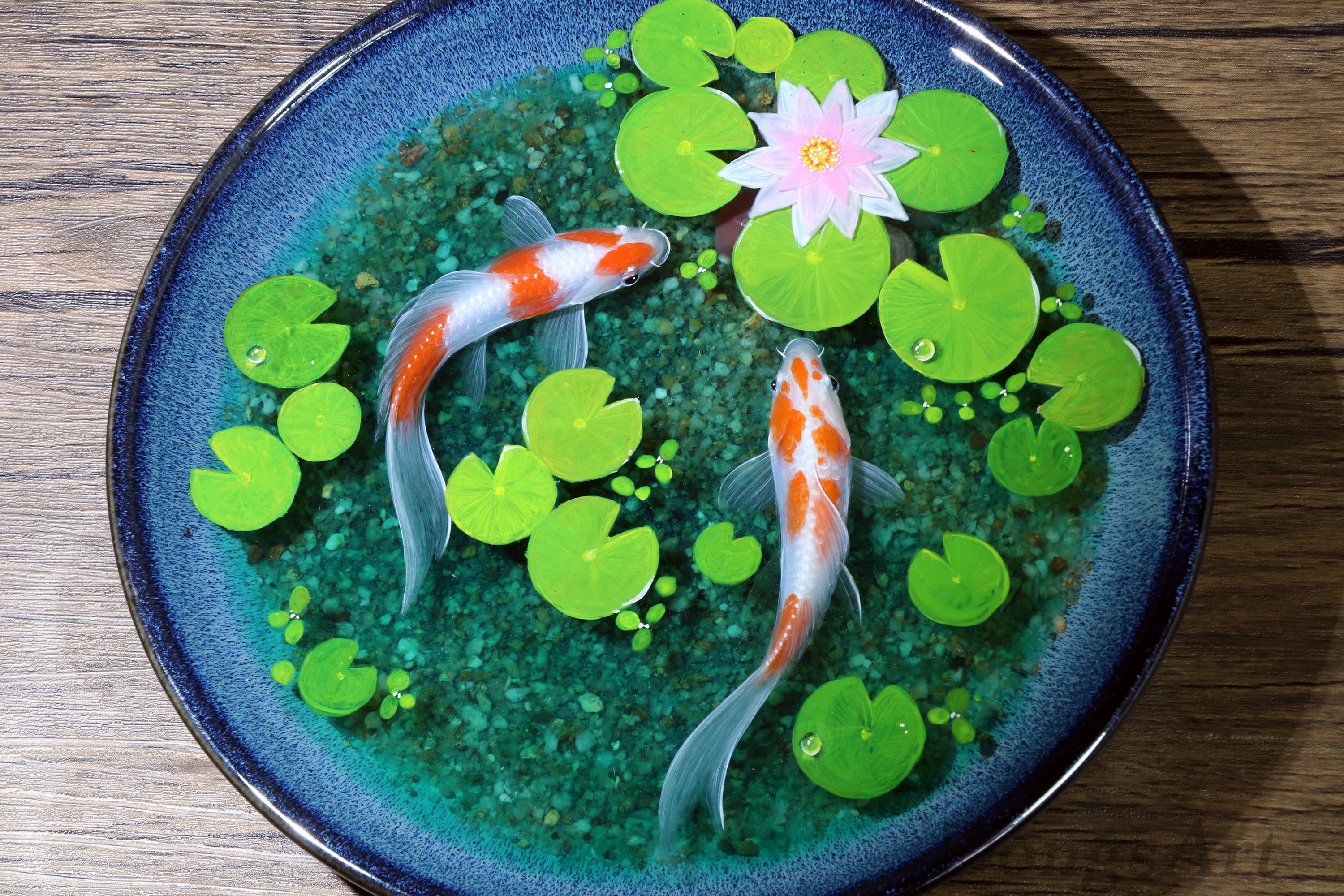 8'' 3D Resin Painting lotus Aquarium, 3D resin painting, goldfish A...