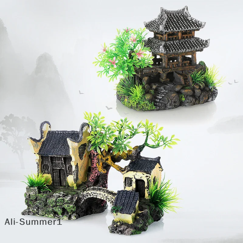 Simulation Decoration Fish Tank Ornament Ornament Resin Aquarium Ornament Fish Tank Landscape House ...