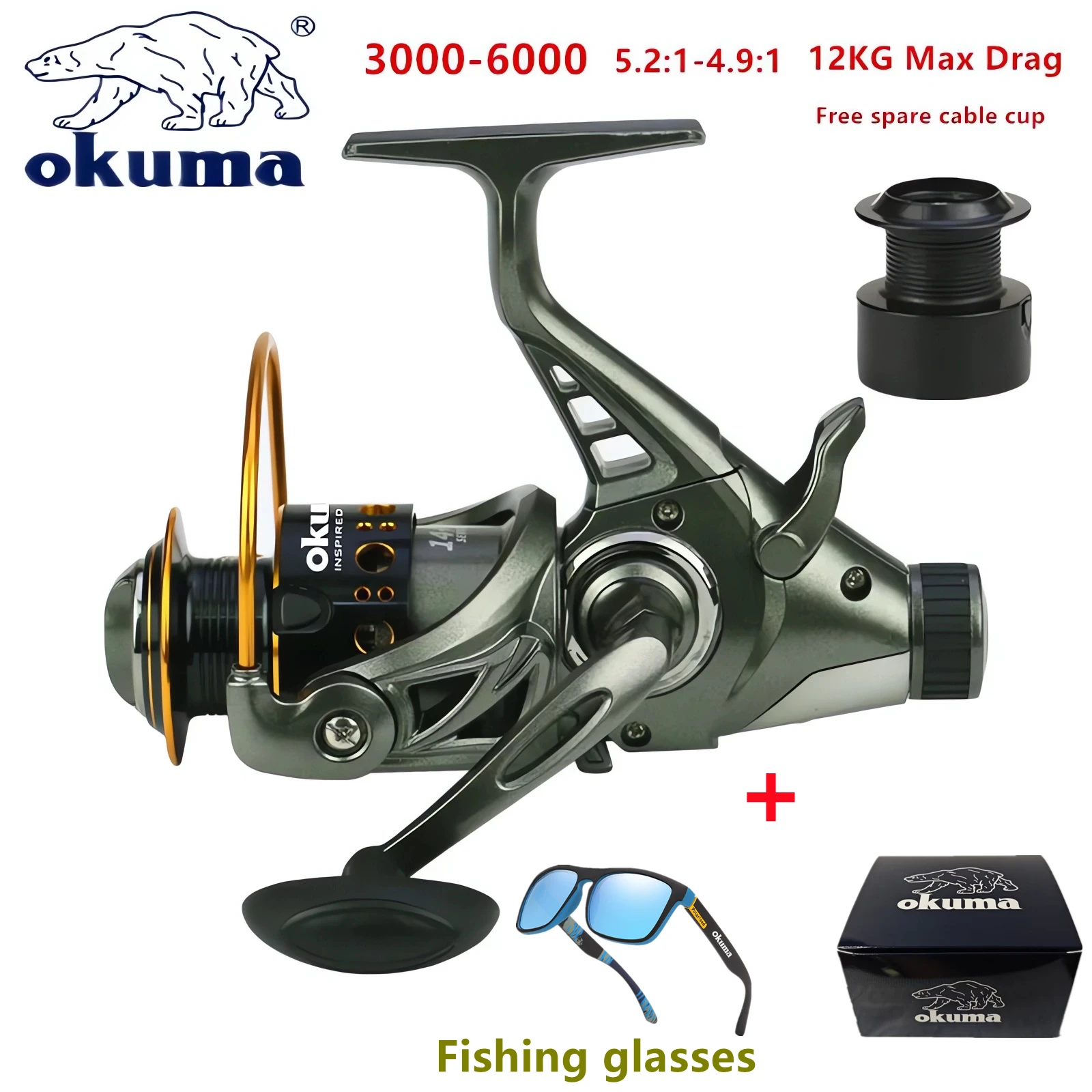 OKUMA Dual Release Front and Rear Brake Fishing Wheel 12Kg Max Drag Fishing Reel Saltwater Freshwate...