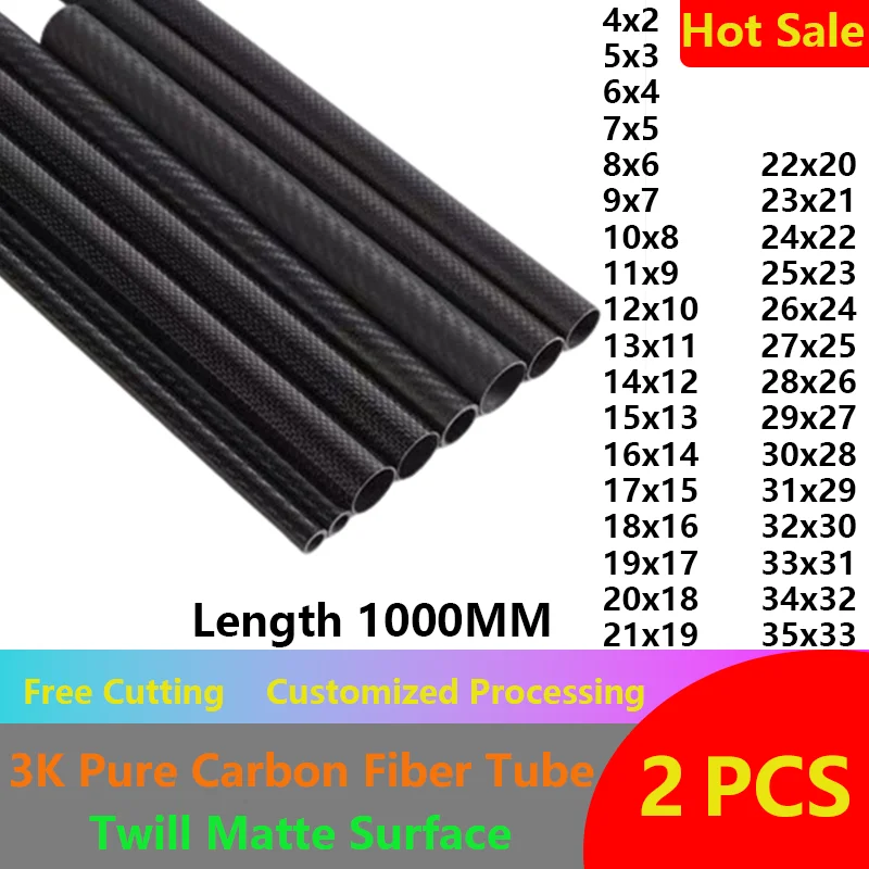 3K Carbon Fiber Tube 2PCS Length 1000MM Twill Matte Wall Thickness 1mm High strength full carbon fib...