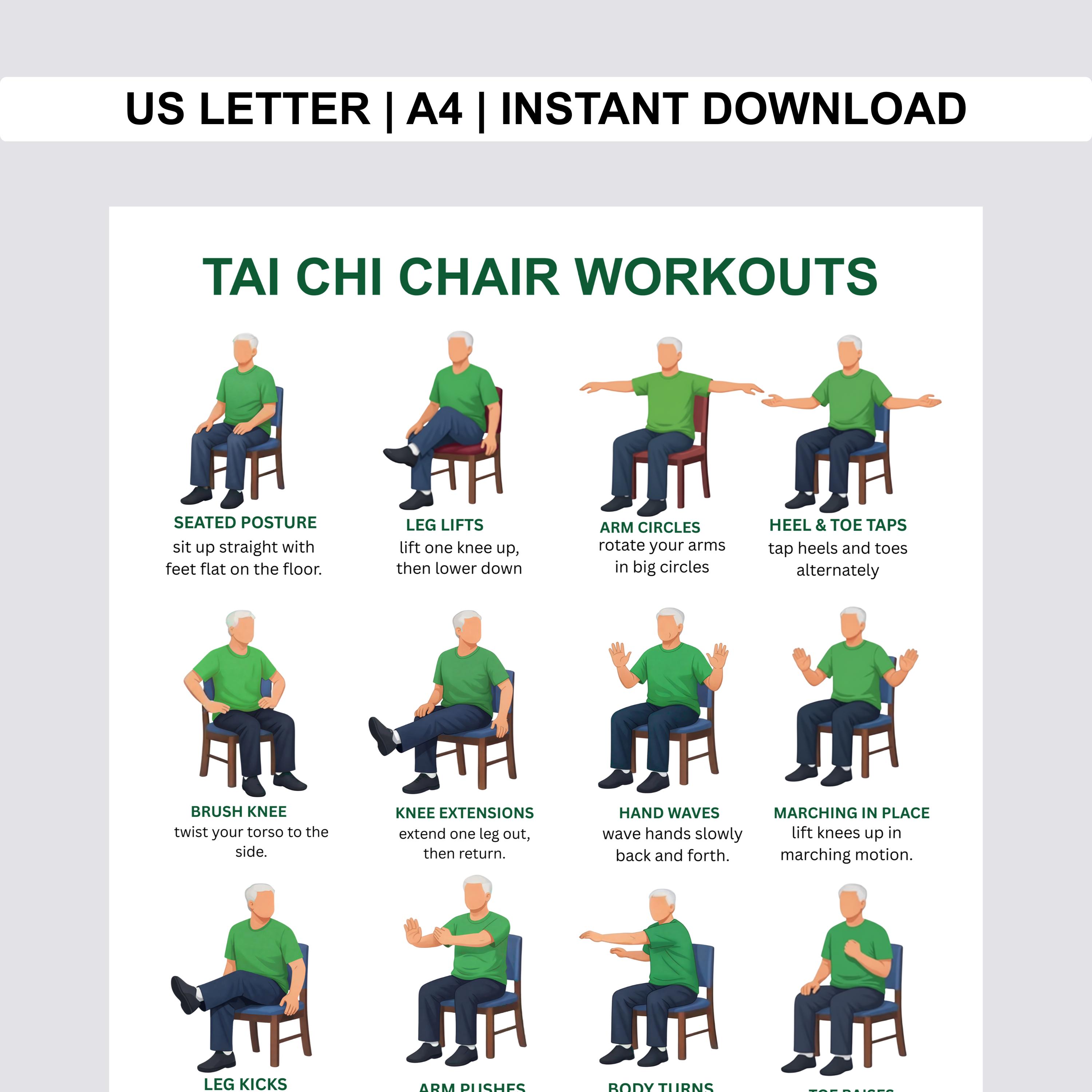 Printable Tai Chi Chair Workouts, Workout Plan PDF, Digital Downloa...
