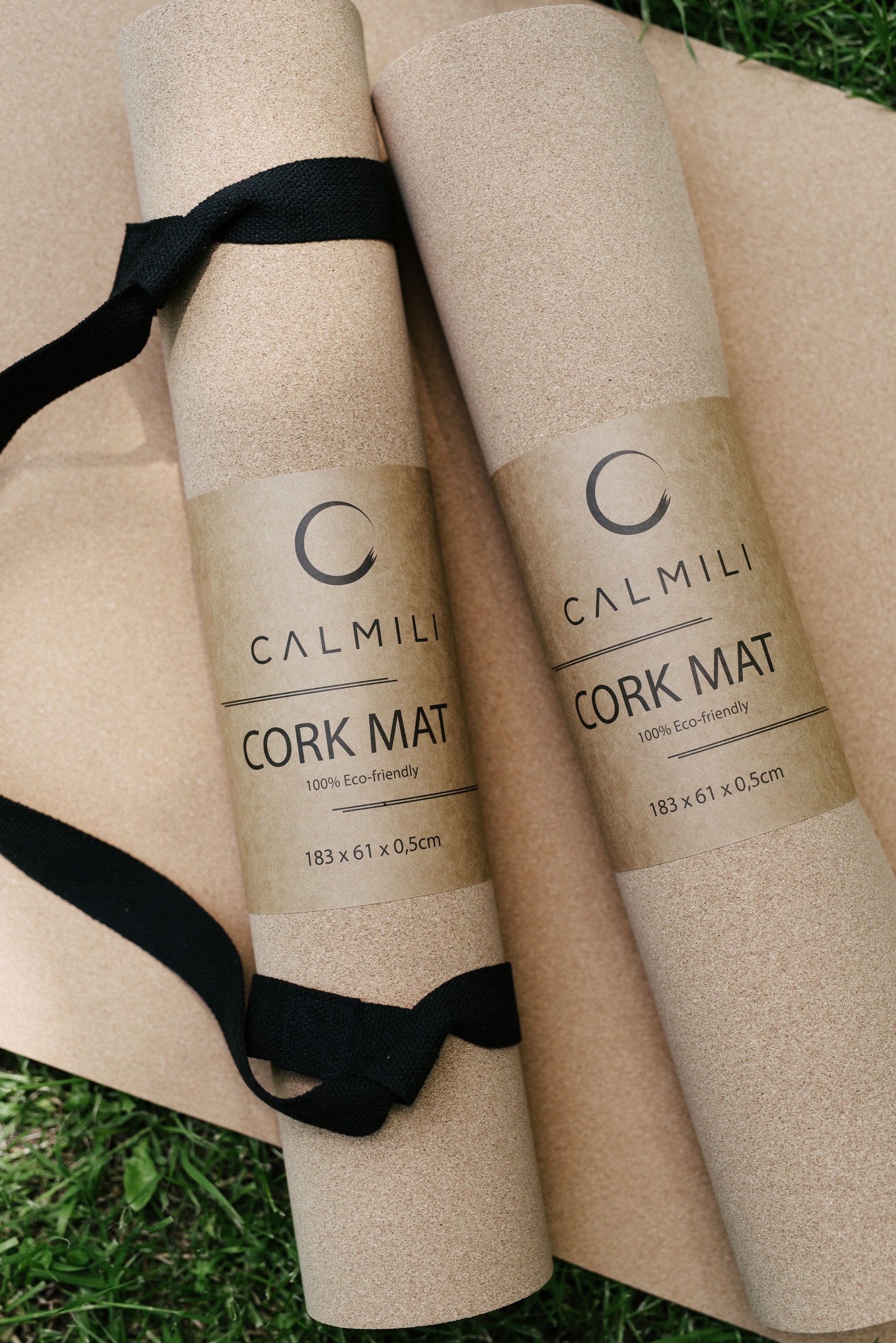 Stylish and environmentally friendly yoga mat made of cork and TPE (5 mm thick, recyclable). Carryin...