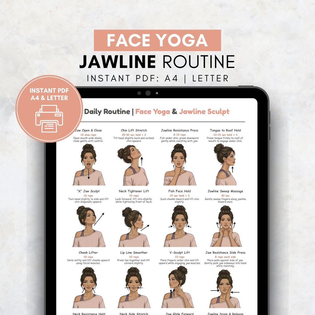 Face Yoga & Jawline Routine - Printable Exercise Chart This poster features a structured collect...