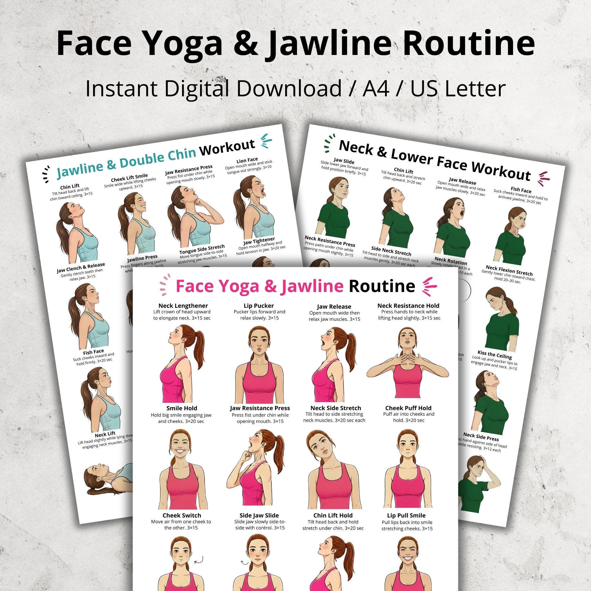 Face Yoga & Jawline Sculpt Routine PDF Natural Jawline Exercises, Neck Tightening & Lymphati...