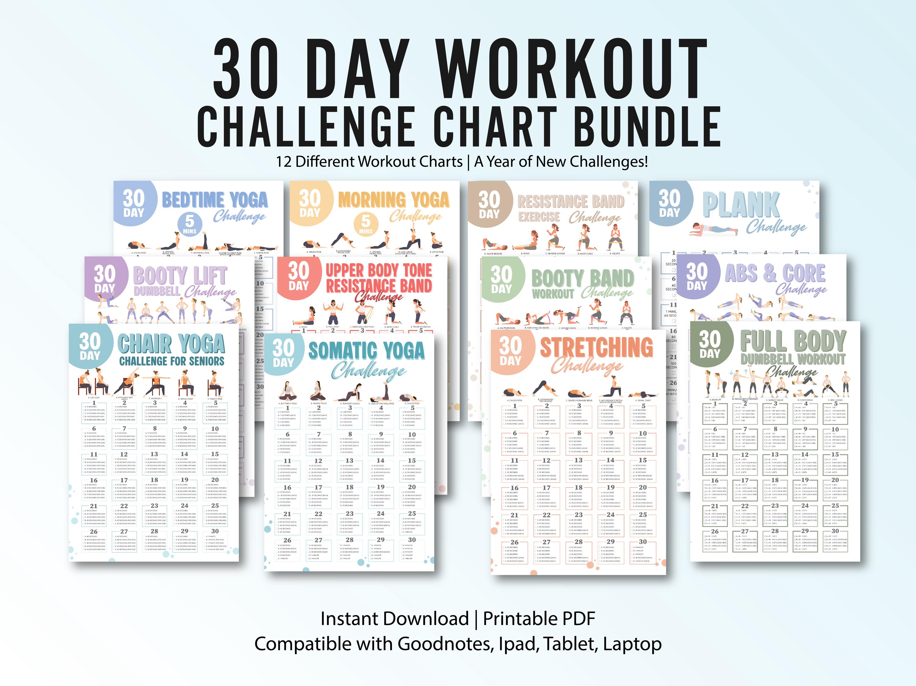 Workout Chart Bundle | Printable 30 Day Challenge Fitness Posters |...