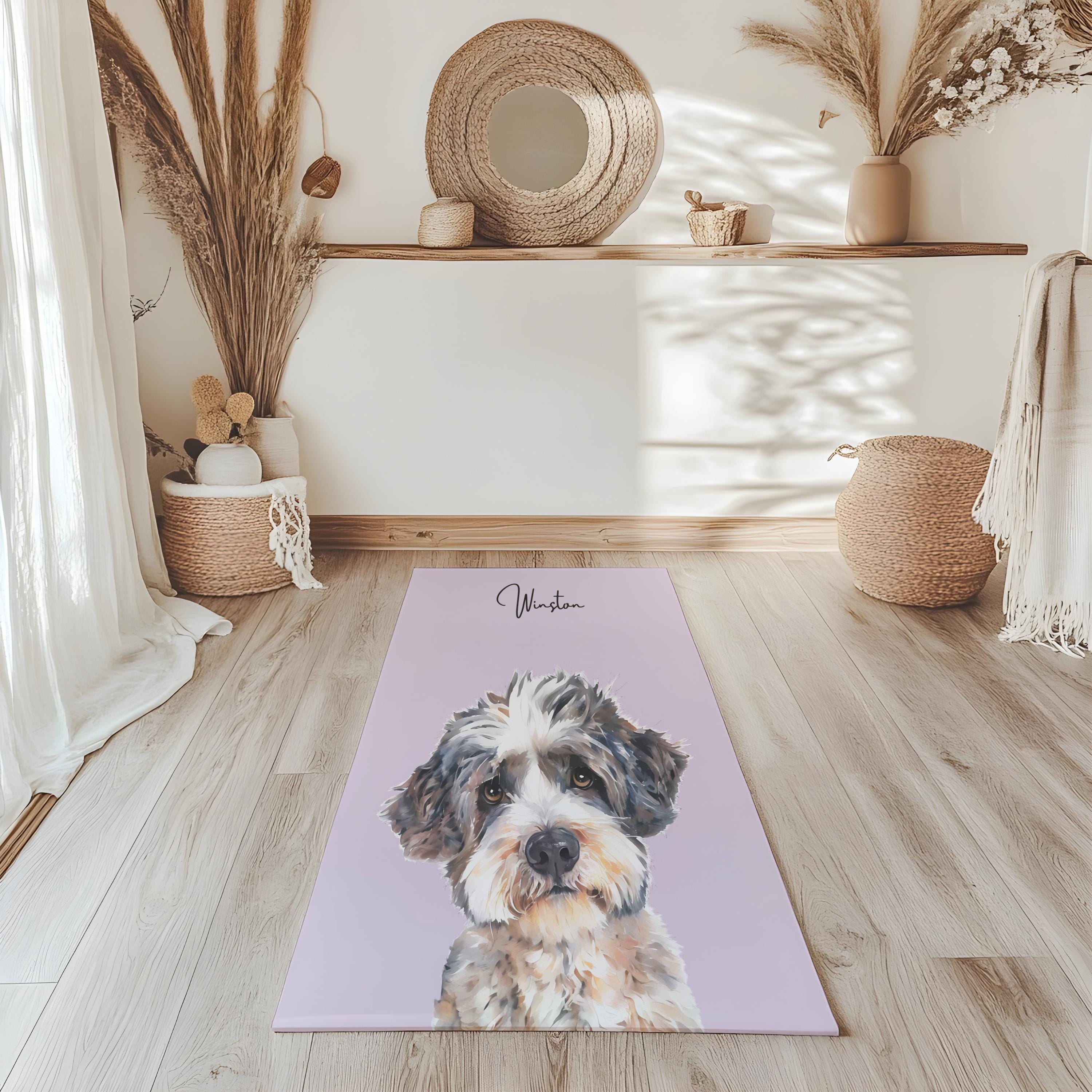 Custom Pet Portrait Yoga Mat with Name, Personalized Dog or Cat Pho...