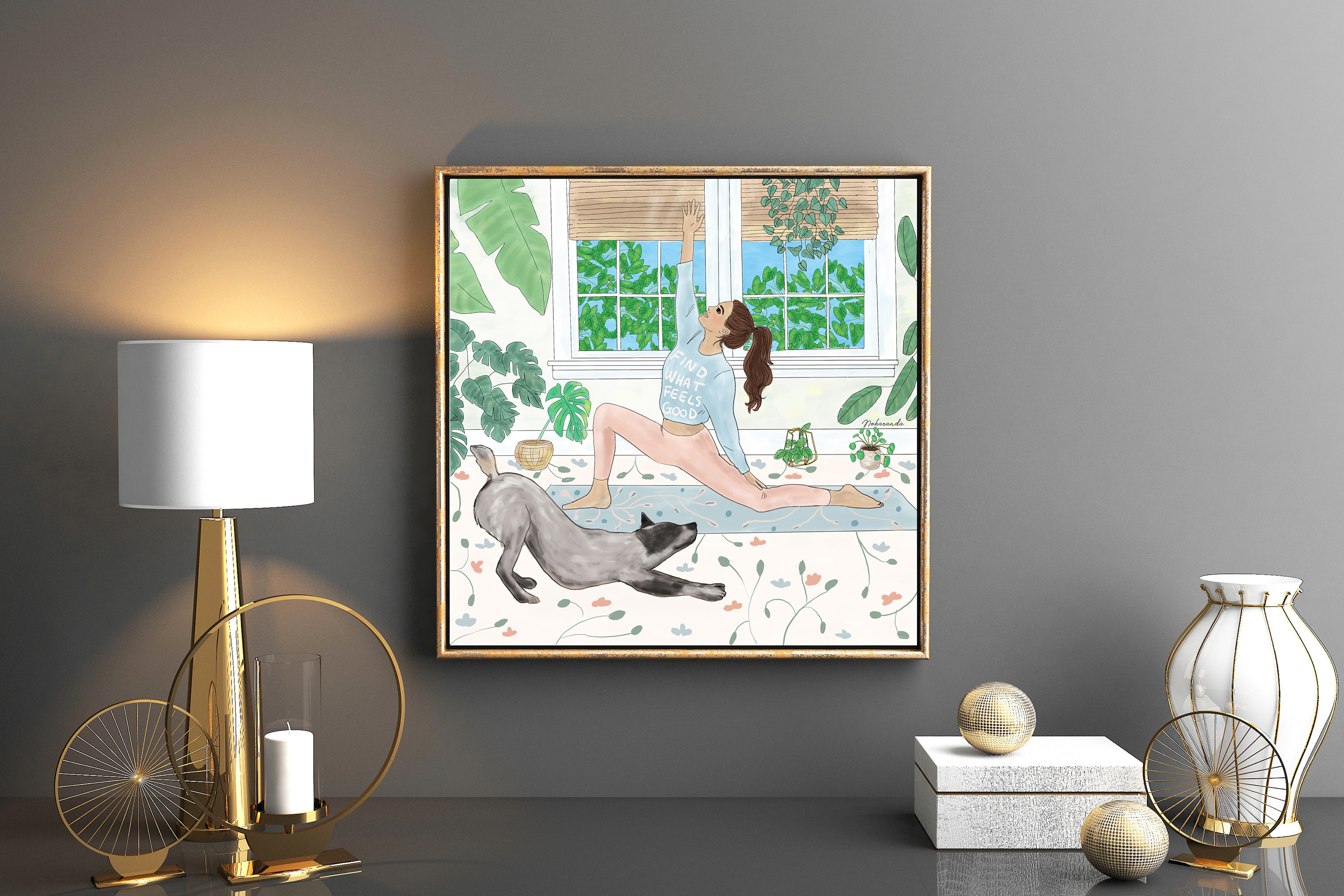 yoga dog, yoga wall art, yoga print, downward facing dog, namaste, yoga gift, yoga pose, yoga wall a...