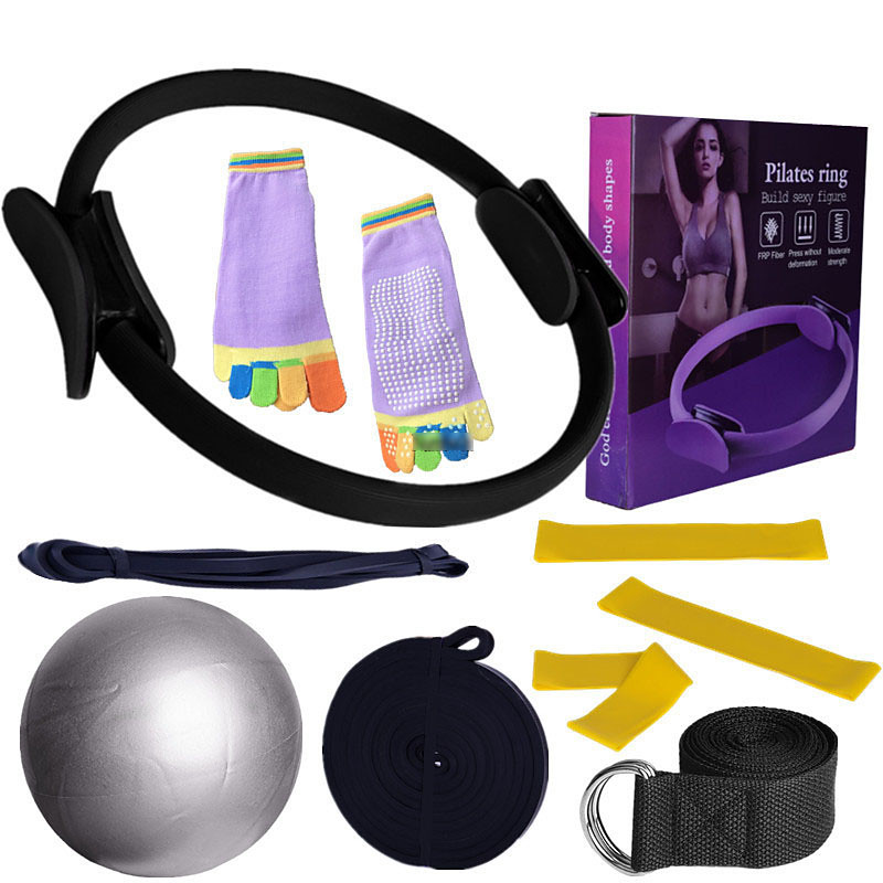 Pilates Circle Six Piece Yoga Ball Latex Elastic Ring Yoga Socks Po...