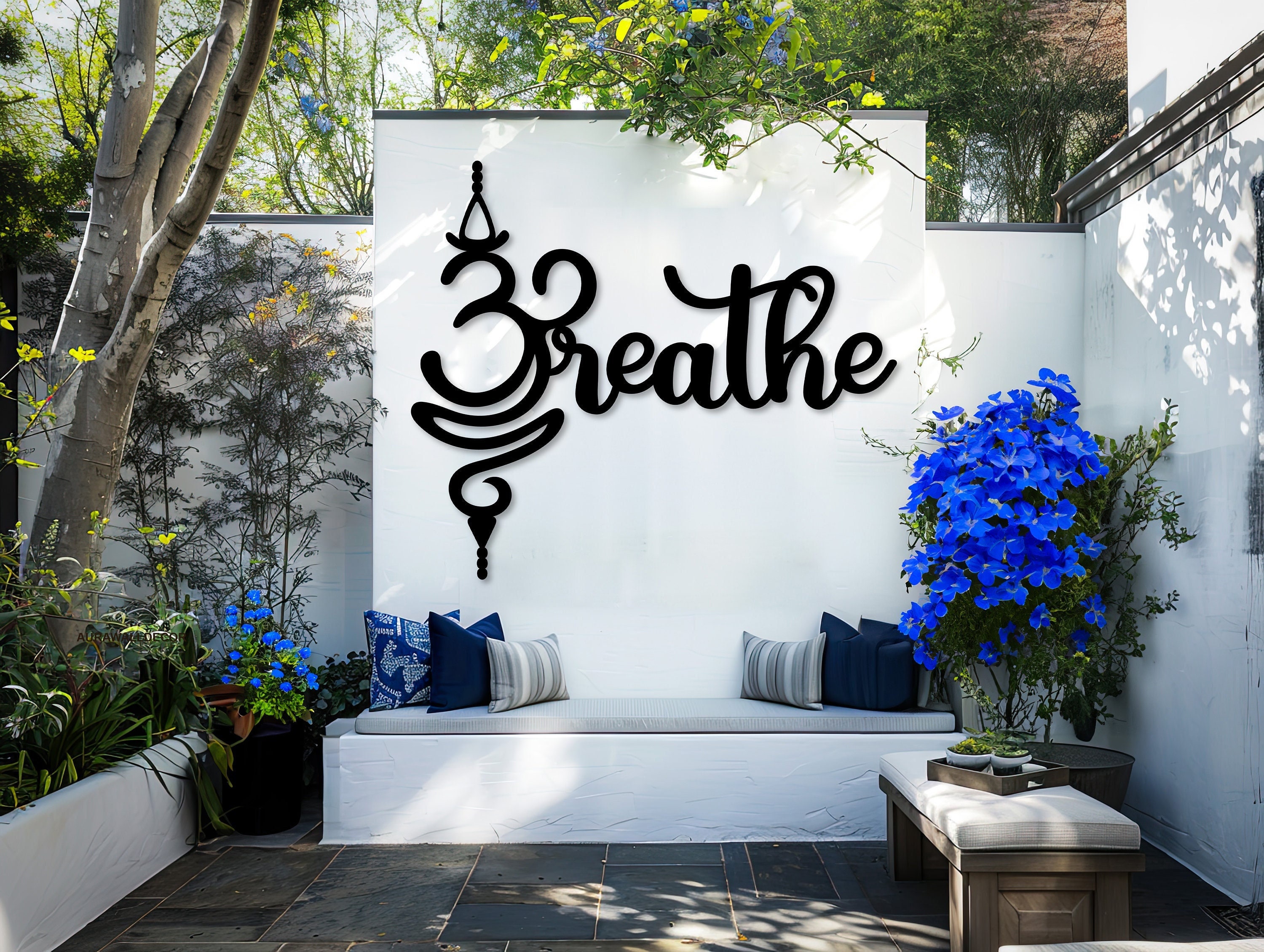 Breathe Sanskrit Symbol Metal Wall Decor,, Om Yoga Symbol Wall Art,...