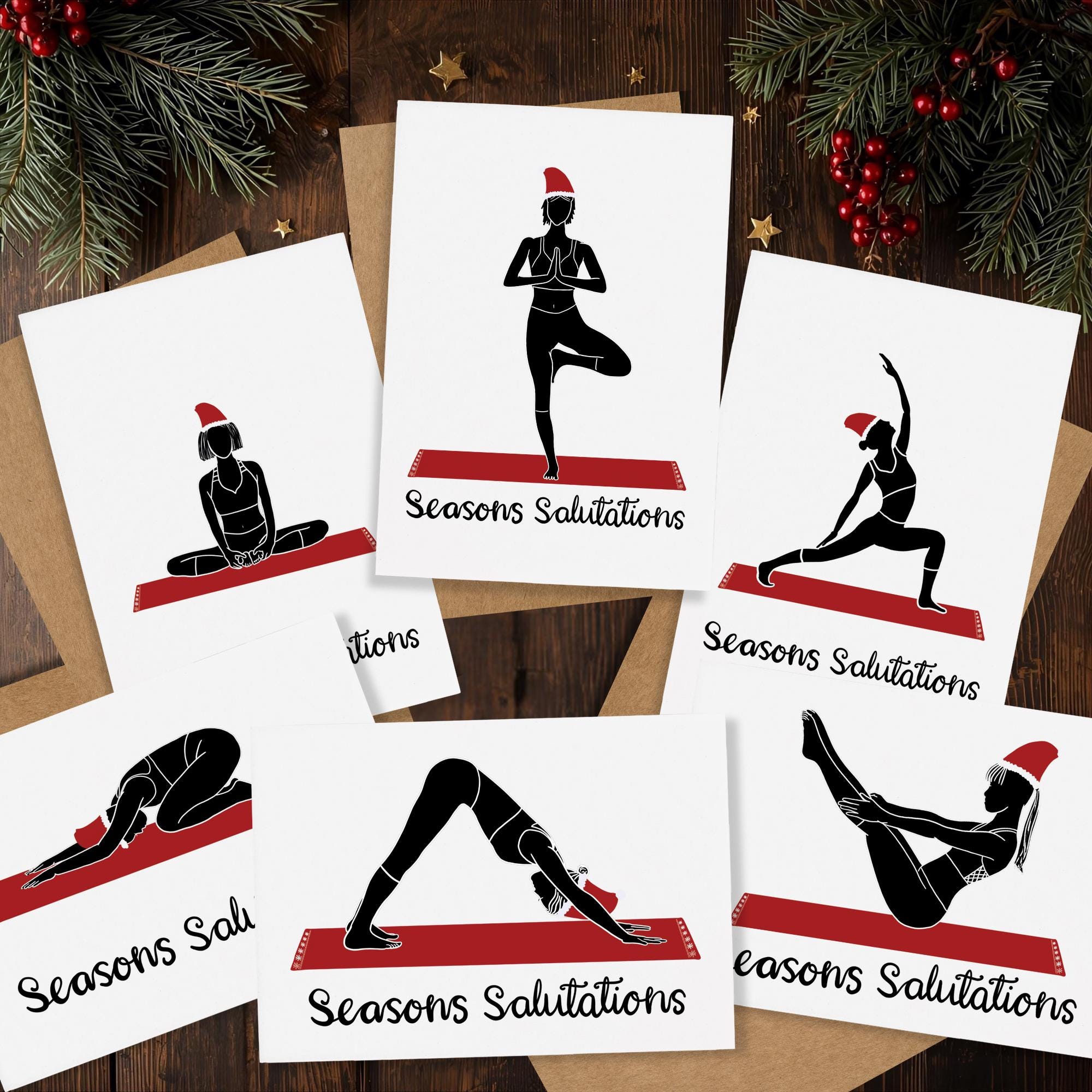 Yoga Christmas Cards - Yoga Pose Christmas Cards Set of 6 - Funny F...