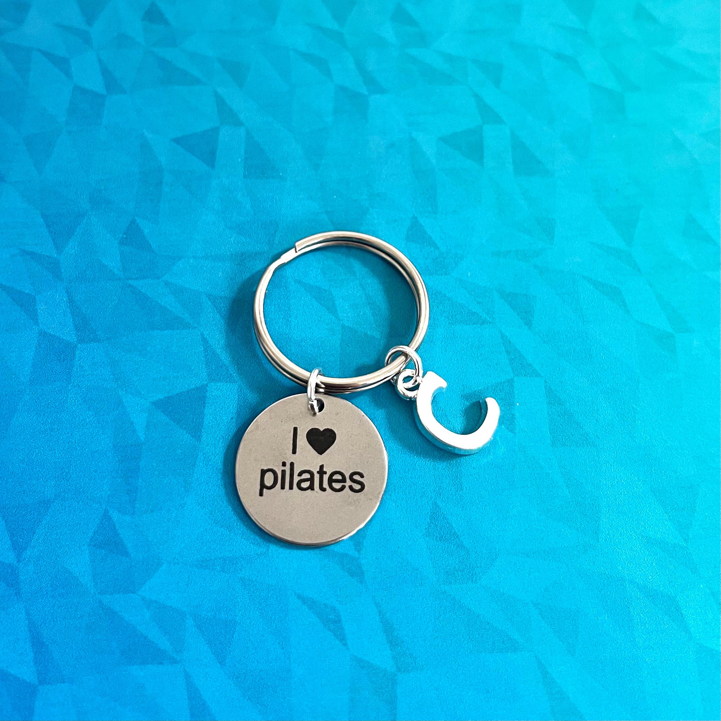 Pilates fitness gift idea, I love Pilates keyring, featuring a letter charm of your choice. Perfect ...