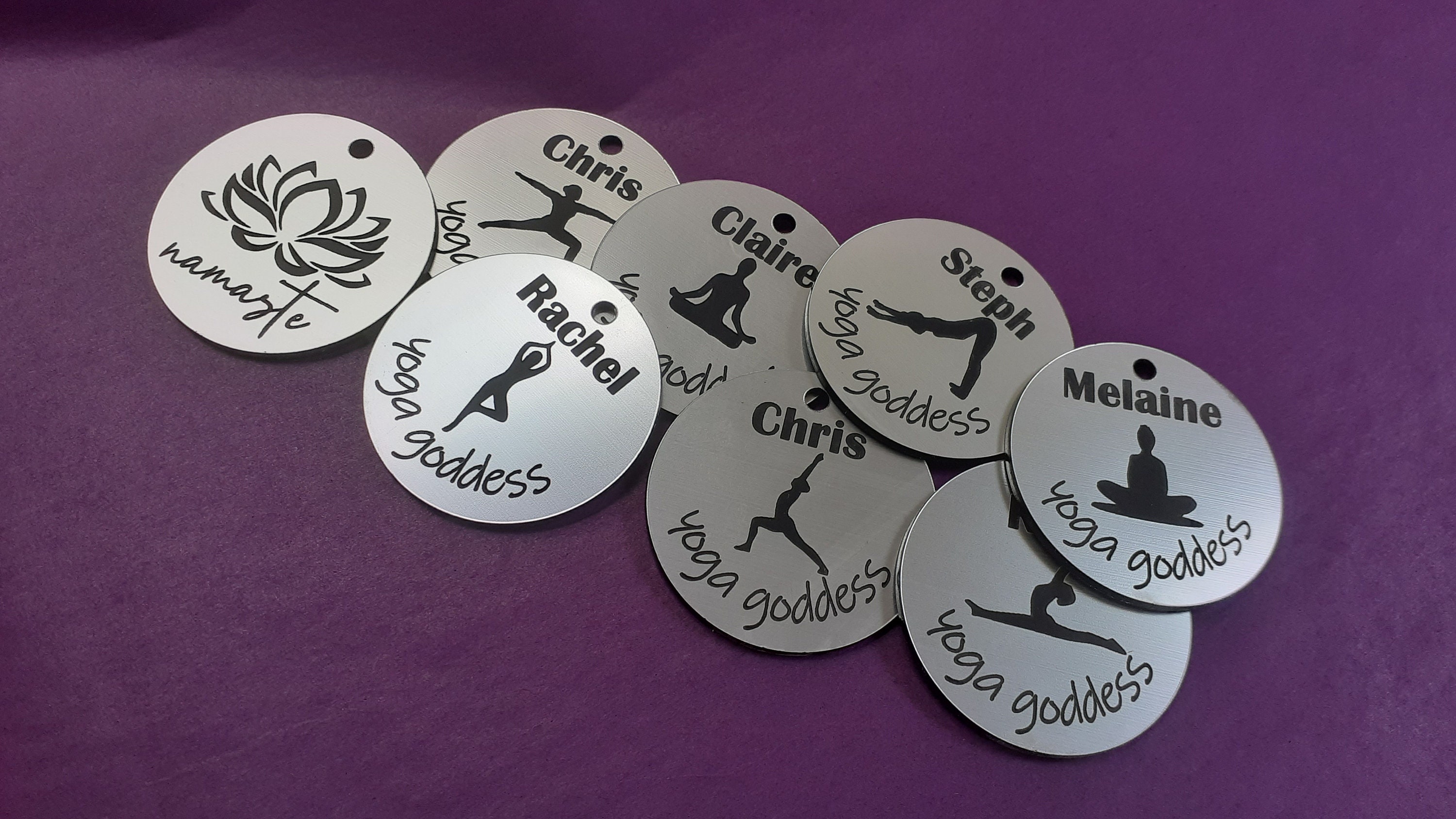 Personalised Yoga Poses Keyring: Engraved Acrylic Namaste Gift