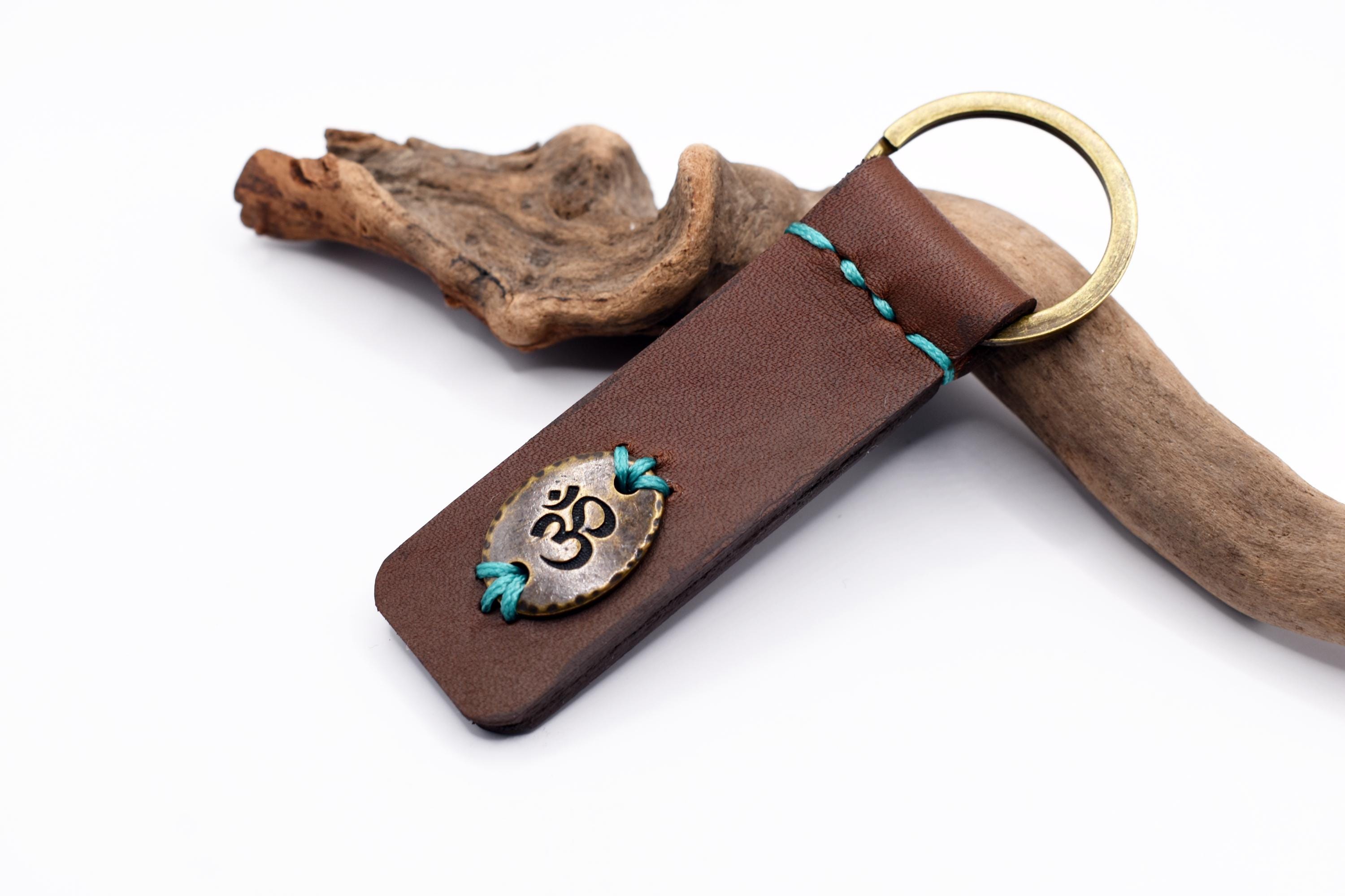 PERSONALIZED Om Leather Keychain, Handmade Aum Keyring, Custom Engr...